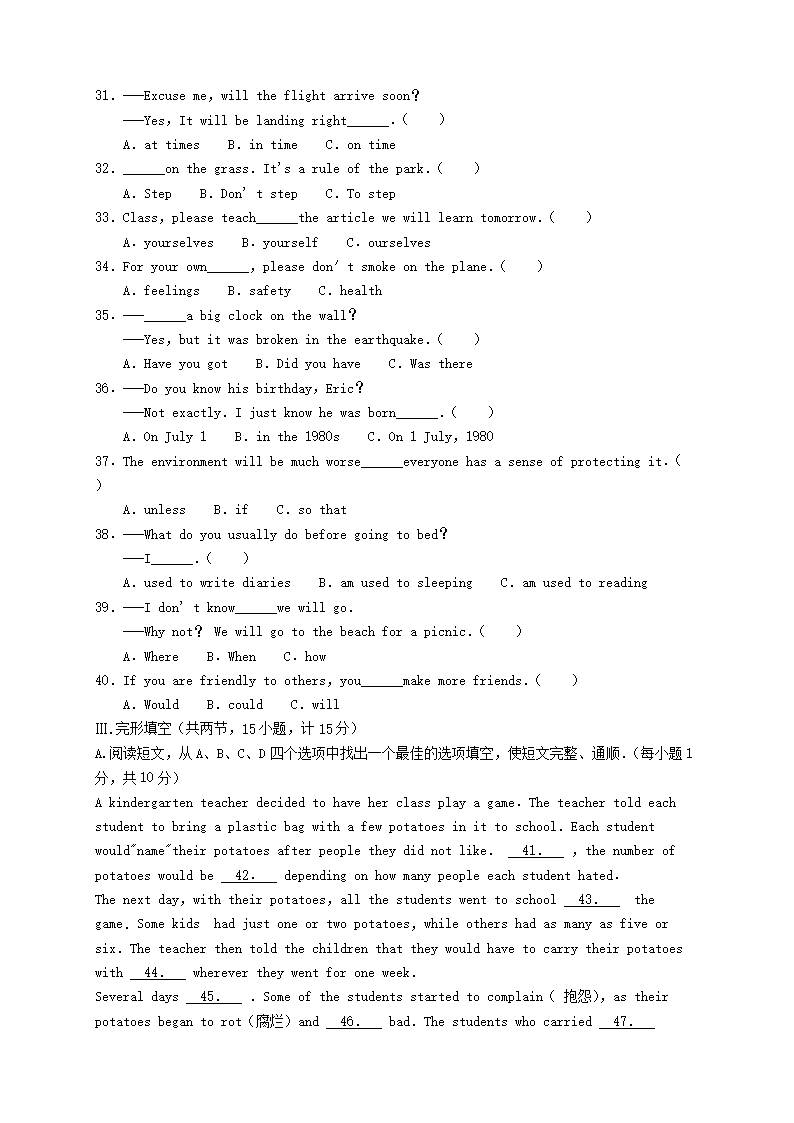 【文档名称】 2019年青海省黄南中考英语真题及答案(Word版).doc
