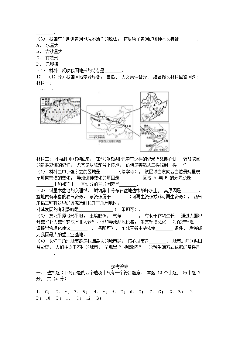 【文档名称】 2015年内蒙古呼伦贝尔中考地理真题及答案(Word版).doc