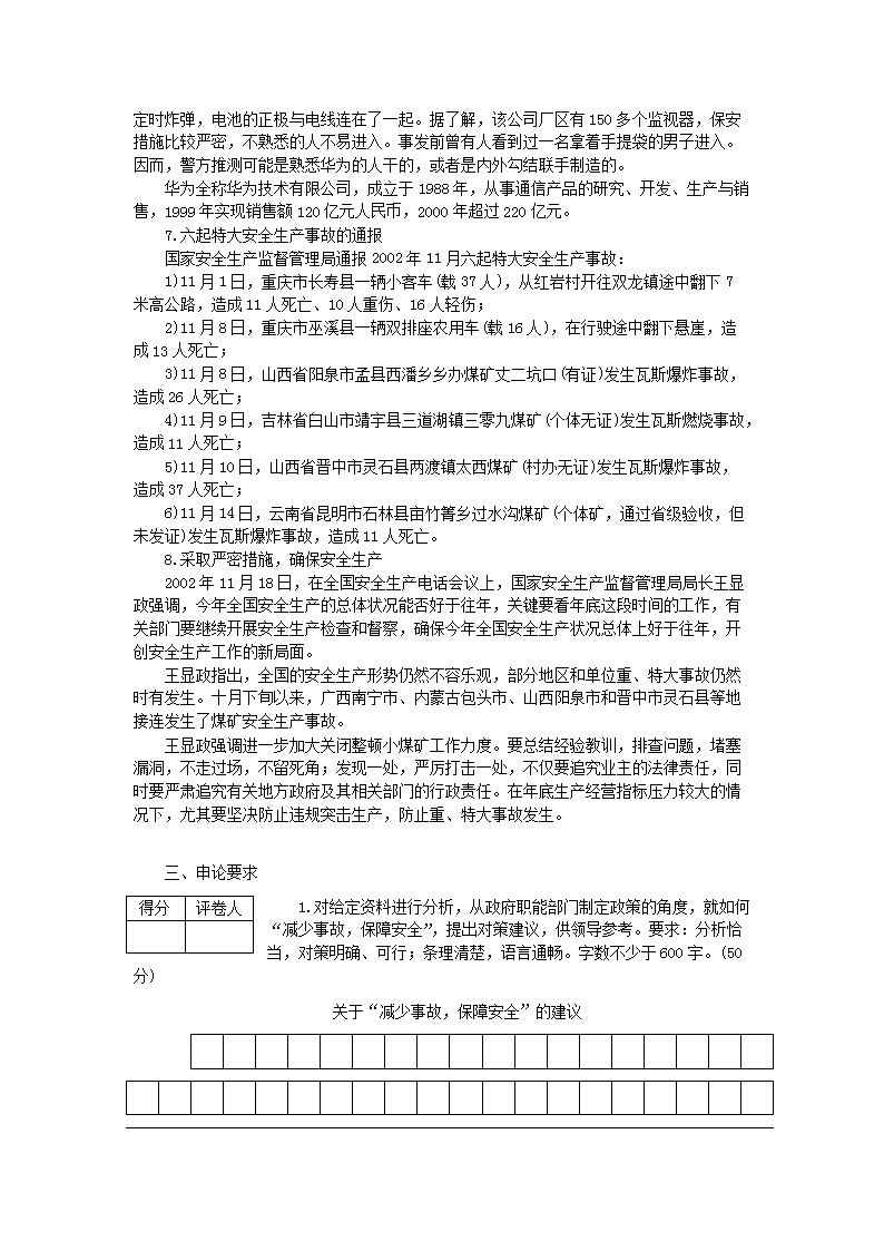 【文档名称】 2003年陕西国家公务员申论考试真题及答案(Word版).doc