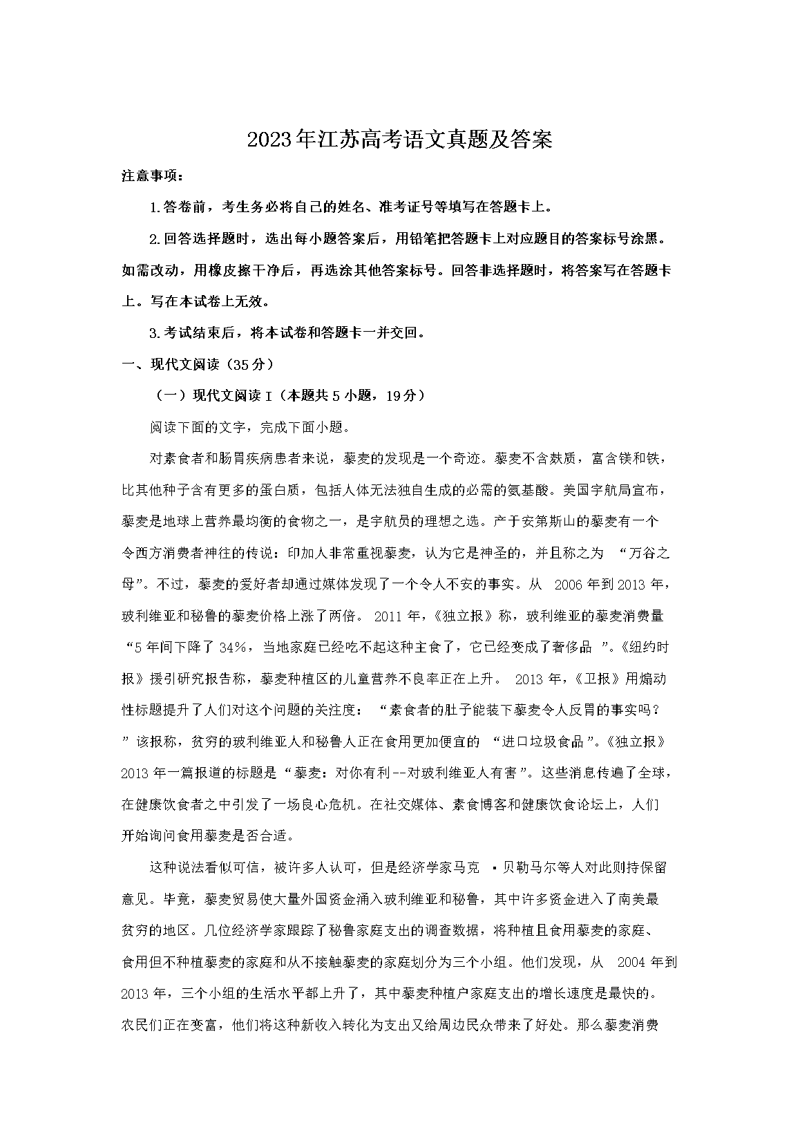 【文档名称】 2023年江苏高考语文真题及答案(Word版).doc