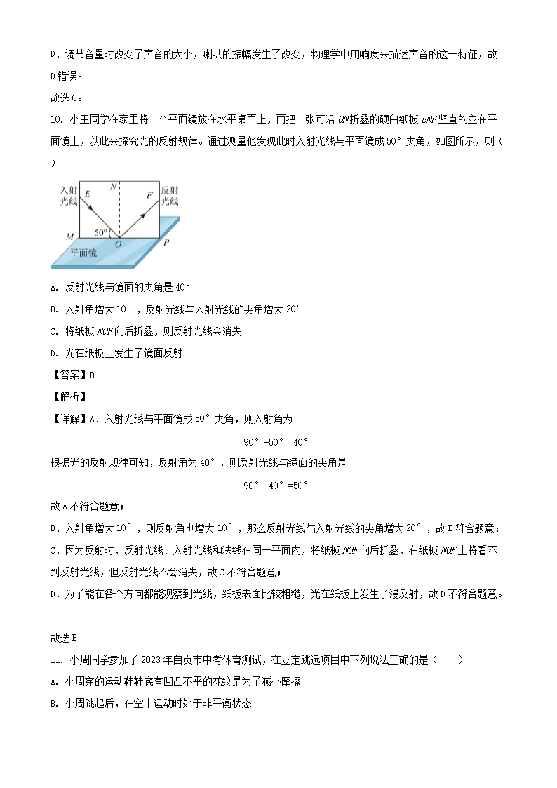 【文档名称】 2023年四川自贡中考物理真题及答案(Word版).doc