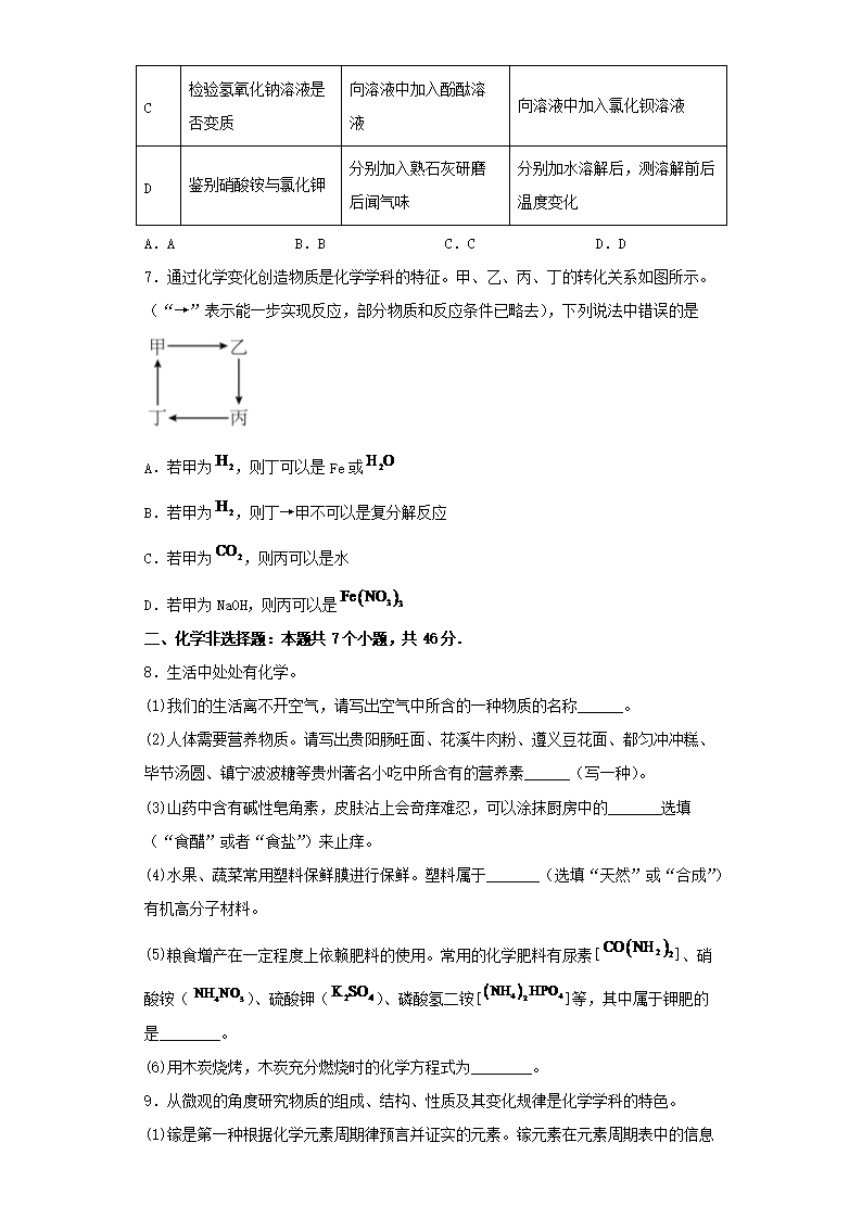 【文档名称】 2023年贵州黔东南中考化开云kaiyun(中国)真题及答案(Word版).doc