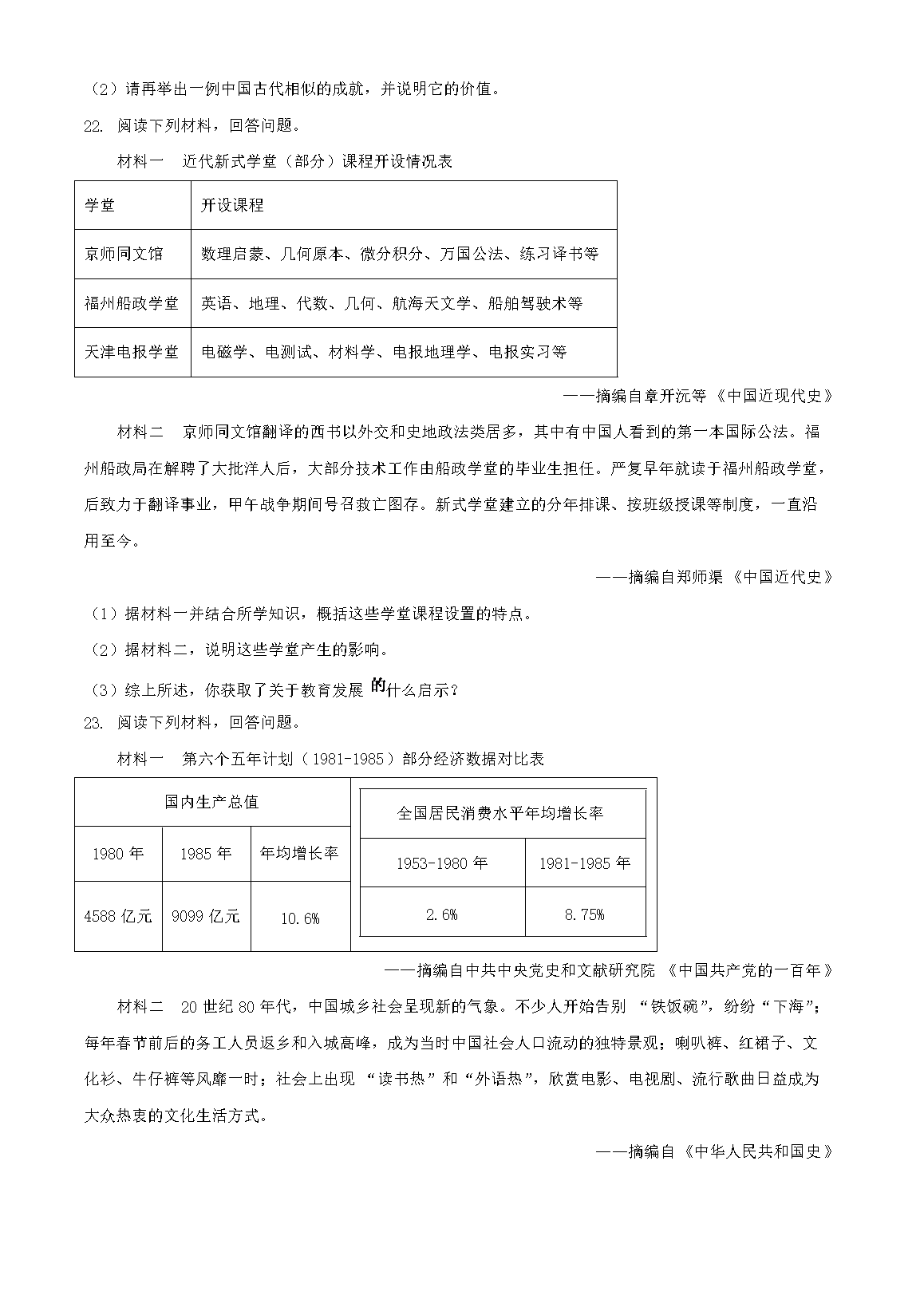【文档名称】 2023年河南三门峡中考历史真题及答案(Word版).doc