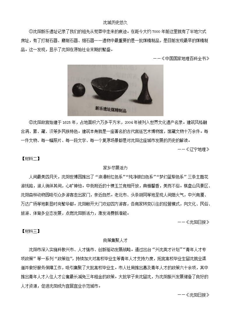【文档名称】 2023年辽宁沈阳中考语文真题及答案(Word版).doc