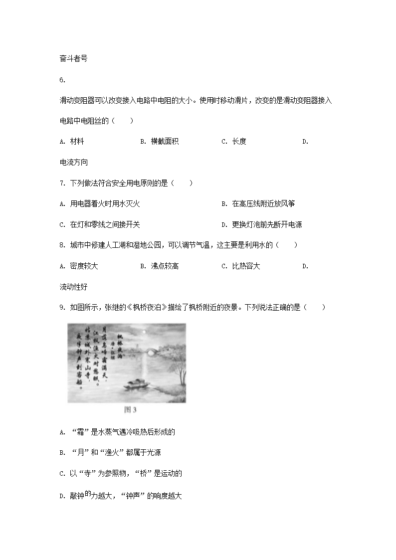 【文档名称】 2023年福建福州中考物理真题及答案(Word版).doc
