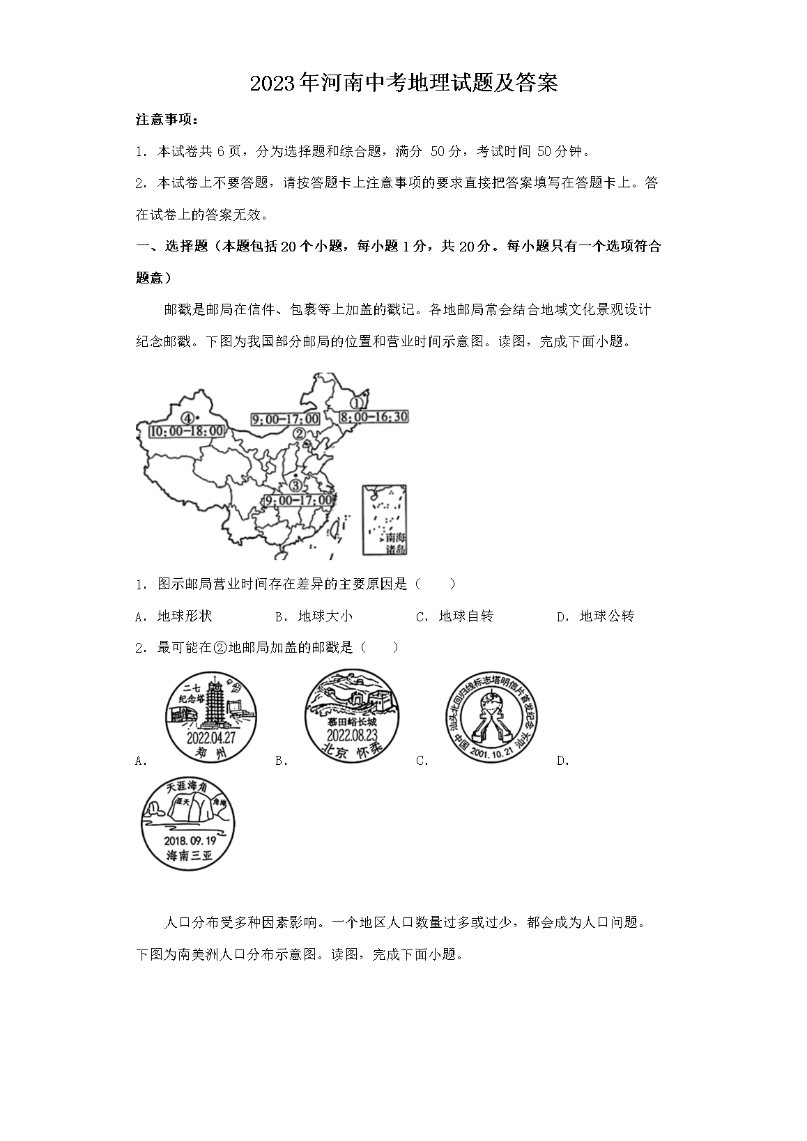 【文档名称】 2023年河南中考地理试题及答案(Word版).doc