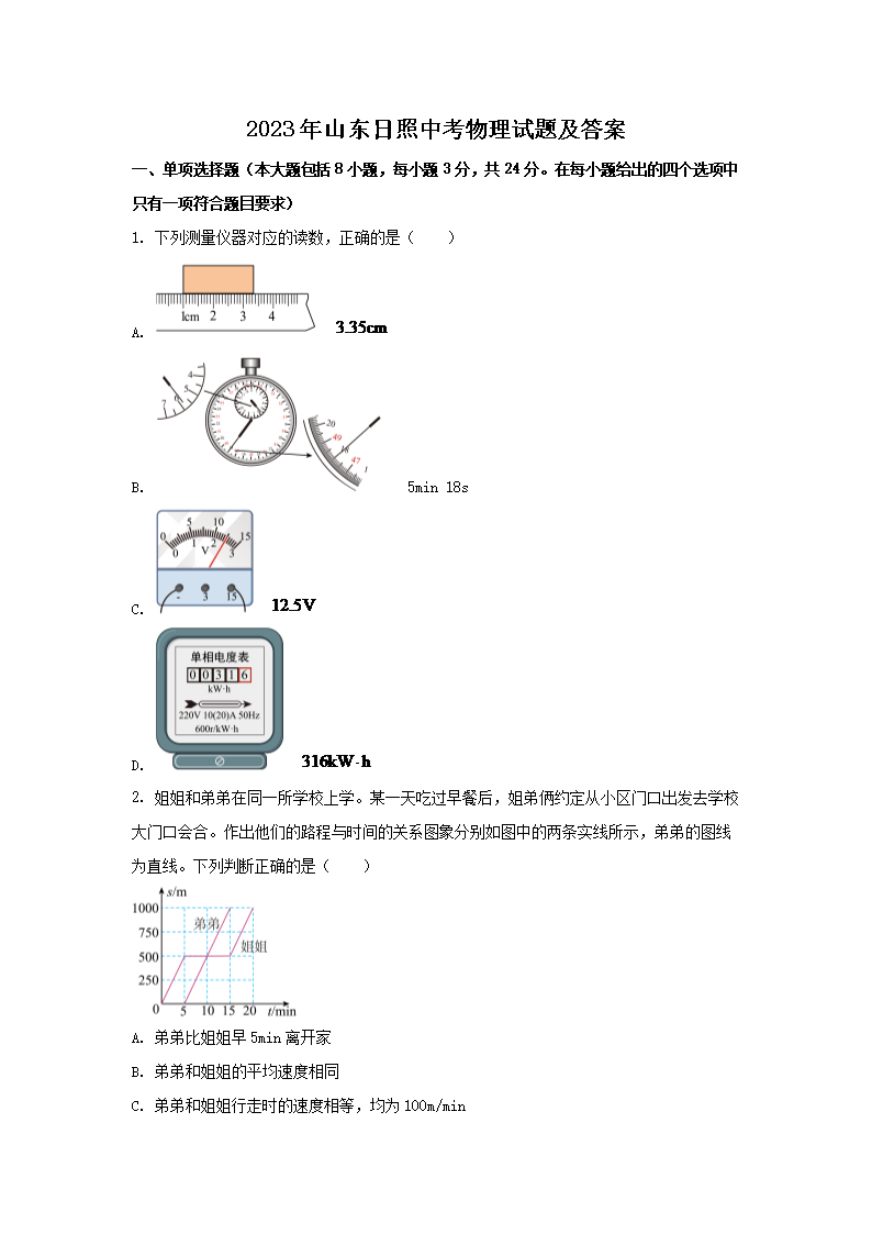 【文档名称】 2023年山东日照中考物理试题及答案(Word版).doc