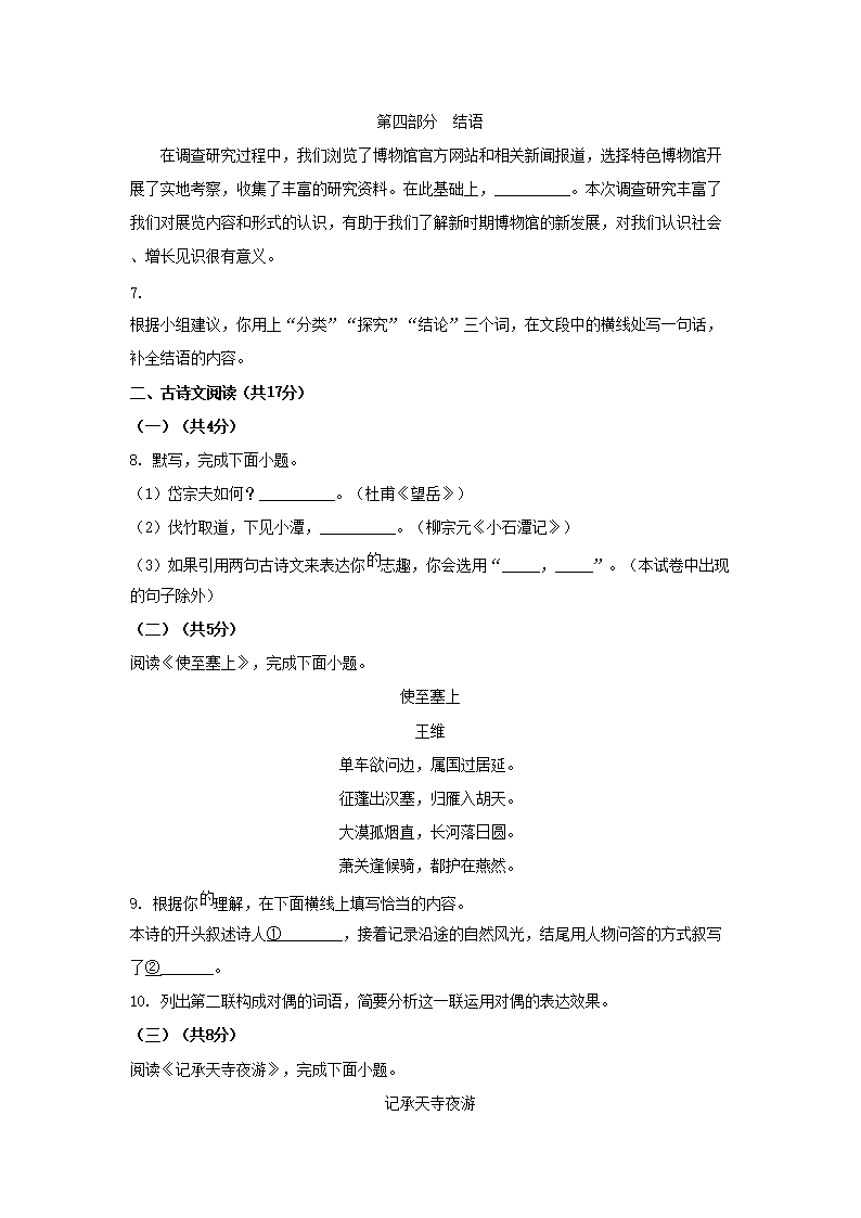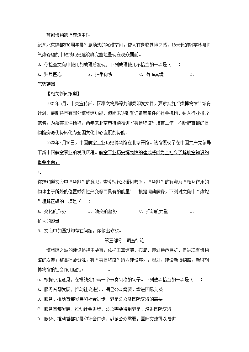 【文档名称】 2023年北京通州中考语文真题及答案(Word版).doc