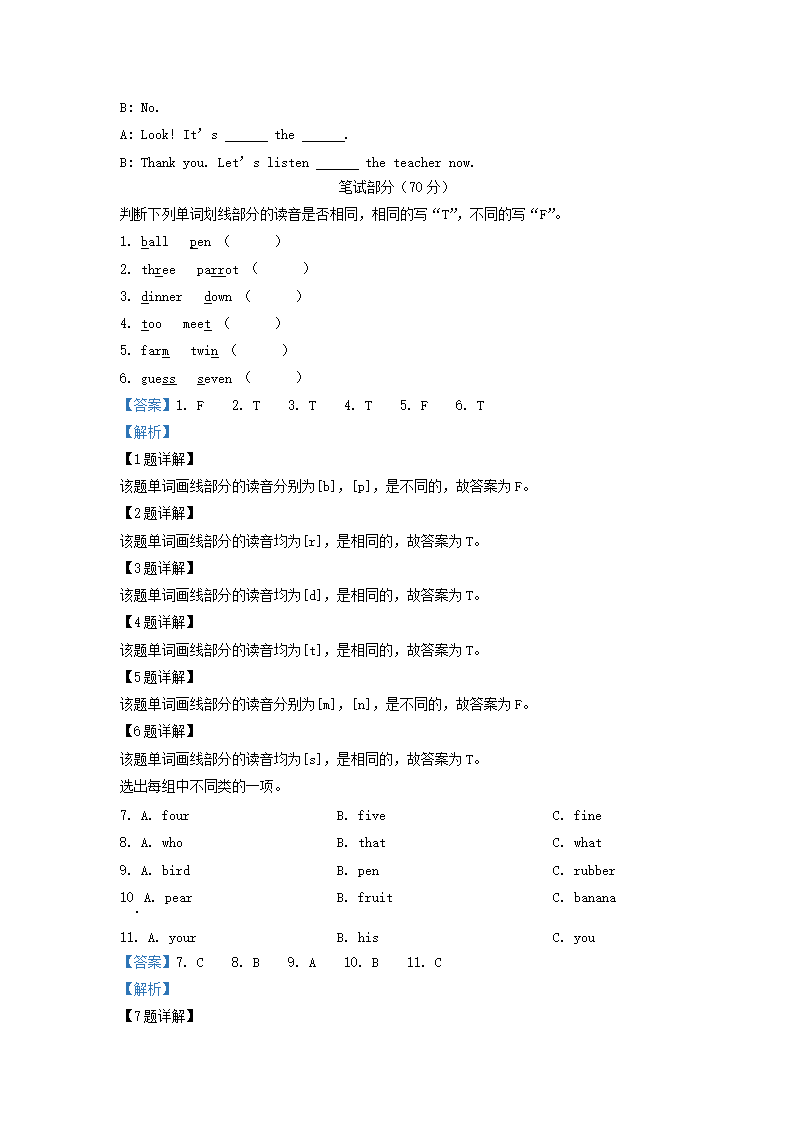 2021-2022开云kaiyun(中国)年江苏省泰州市泰兴市译林版三年级下册期末测试英语试卷及答案(Word版)