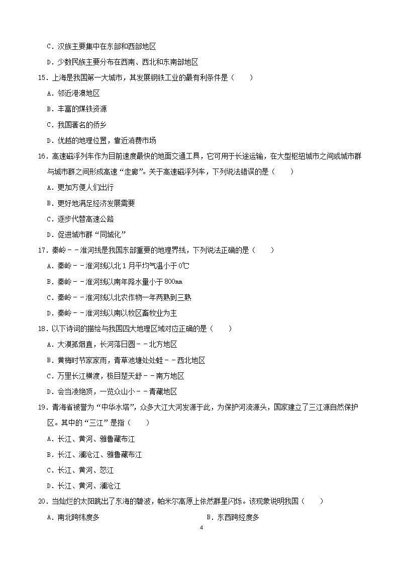 【文档名称】 2020年甘肃临夏中考地理真题及答案(Word版).doc
