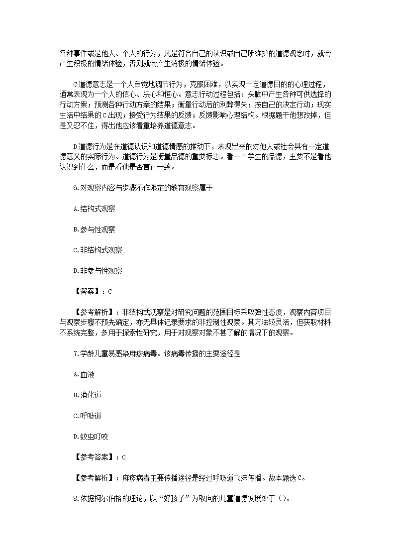 - 2024下半年教师资格证幼儿综合素质真题及答案
