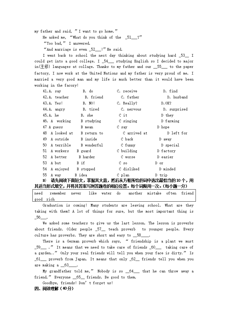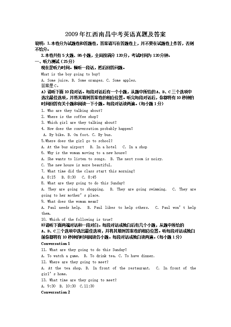 【文档名称】 2009年江西南昌中考英语真题及答案(Word版).doc
