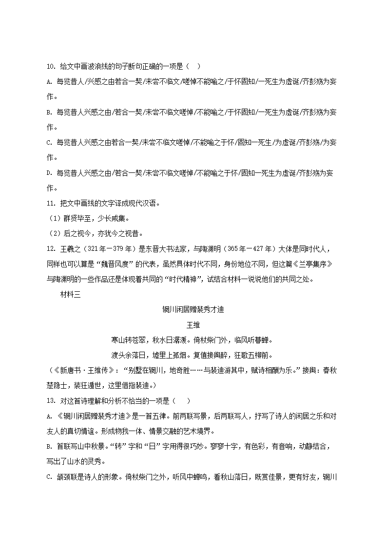 【文档预览】 开云网页版整理发布2020-2021年天津市和平区高一语文上开云kaiyun(中国)期期中试卷及答案(Word版),前五页预览如下:
