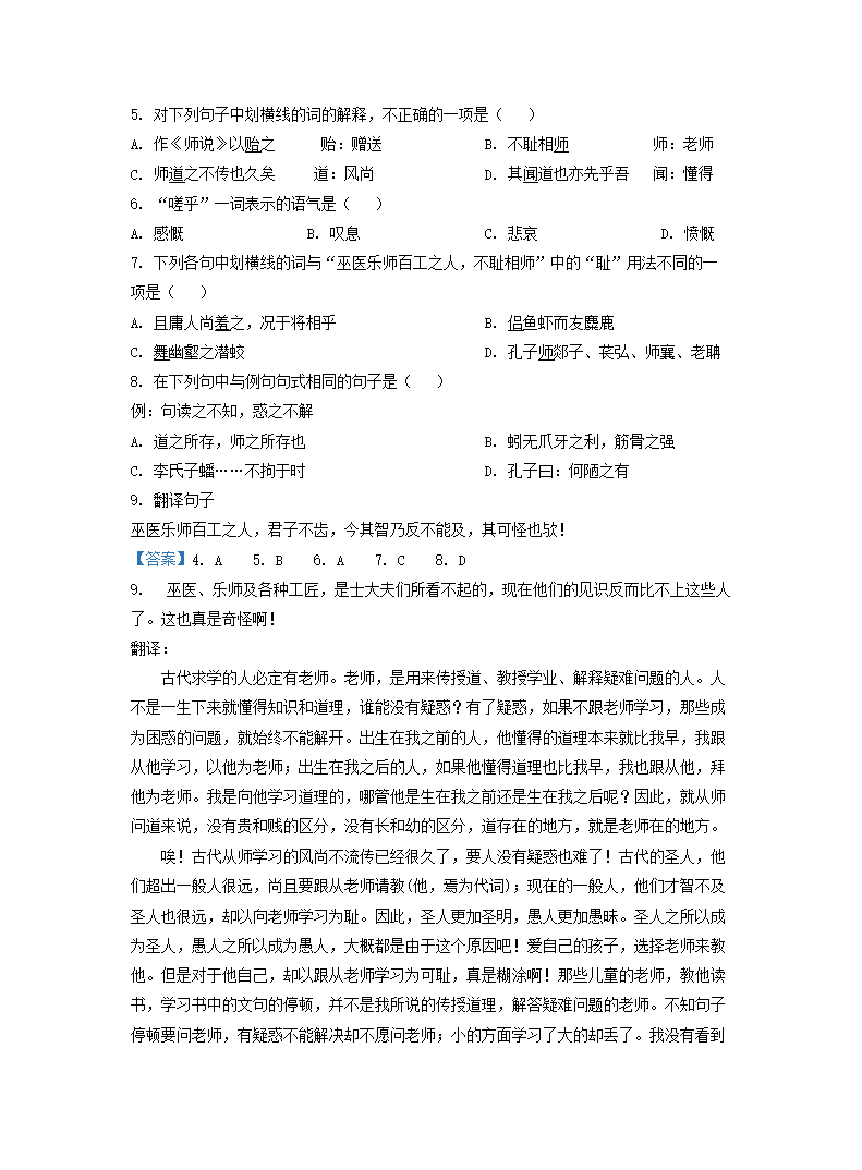- 2020-2021年山东省枣庄市高一语文上开云kaiyun(中国)期期中试卷及答案