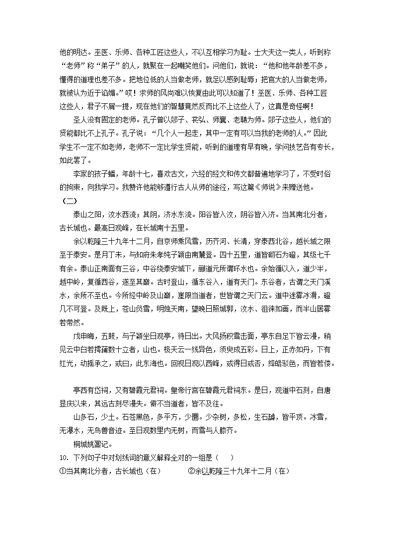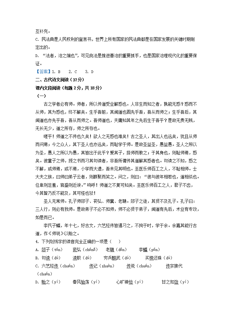 - 2020-2021年天津市东丽区高一语文上开云kaiyun(中国)期期中试卷及答案