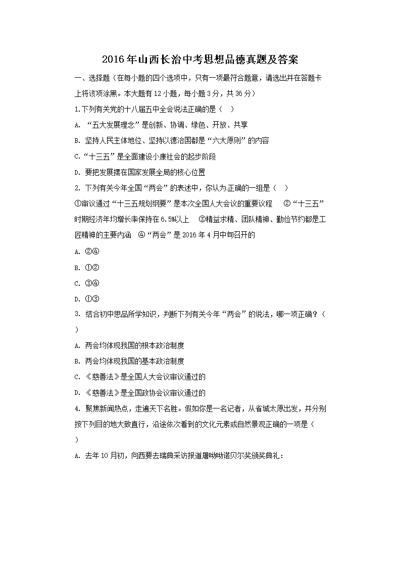 【文档名称】 2016年山西长治中考思想品德真题及答案(Word版).doc