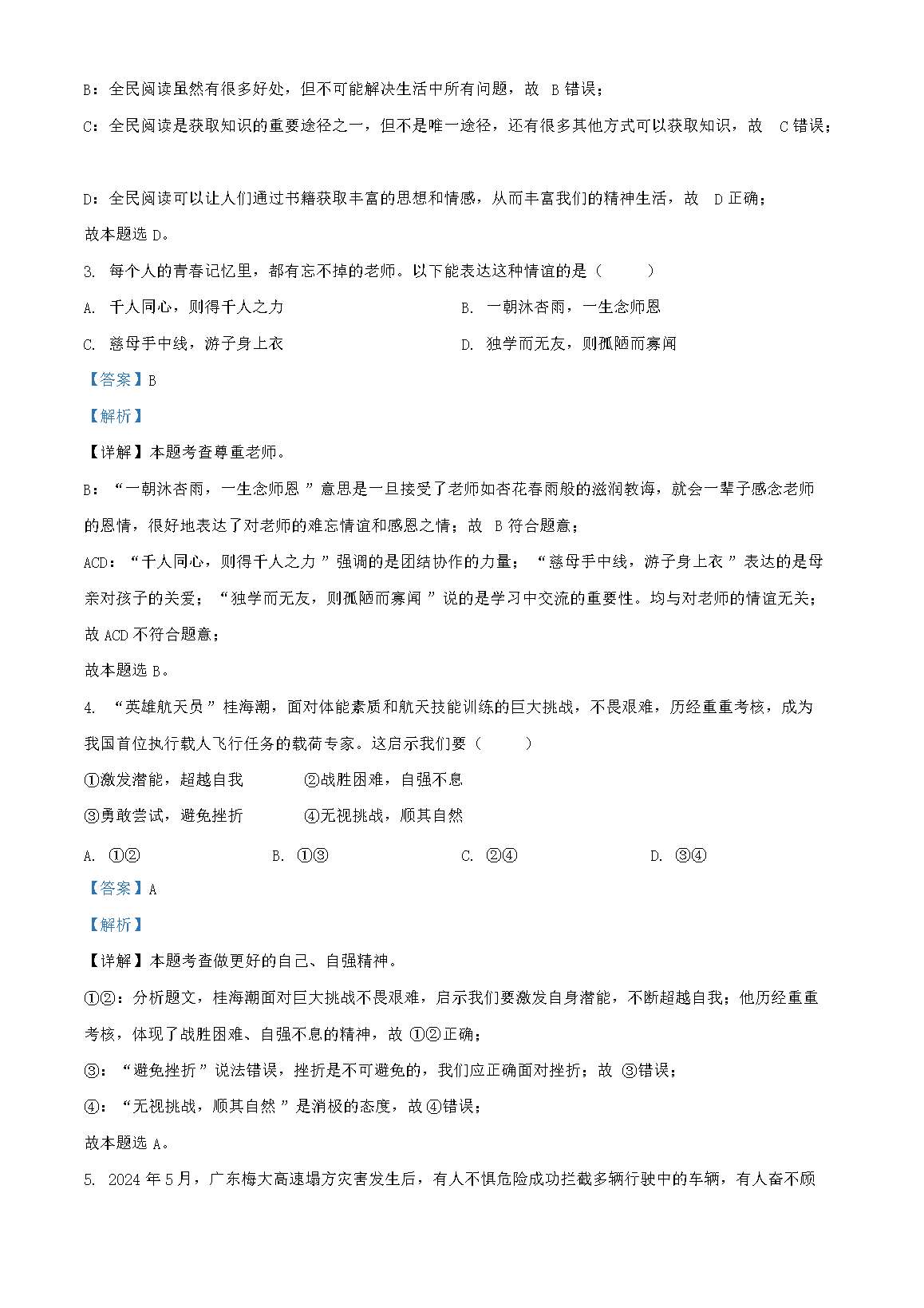 【文档名称】 2024年云南普洱中考道德与法治试题及答案(Word版).doc