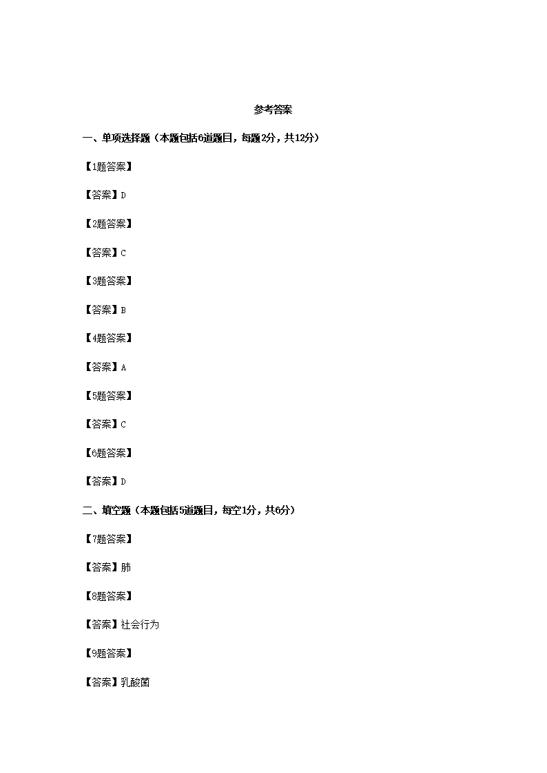 【文档名称】 2024年甘肃陇南中考生物试题及答案(Word版).doc