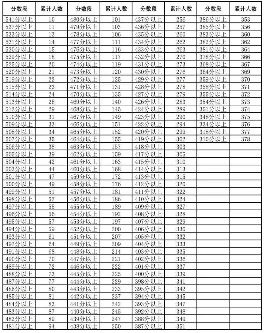 2024年宁夏普通高考总分一分段统计表(文史类)