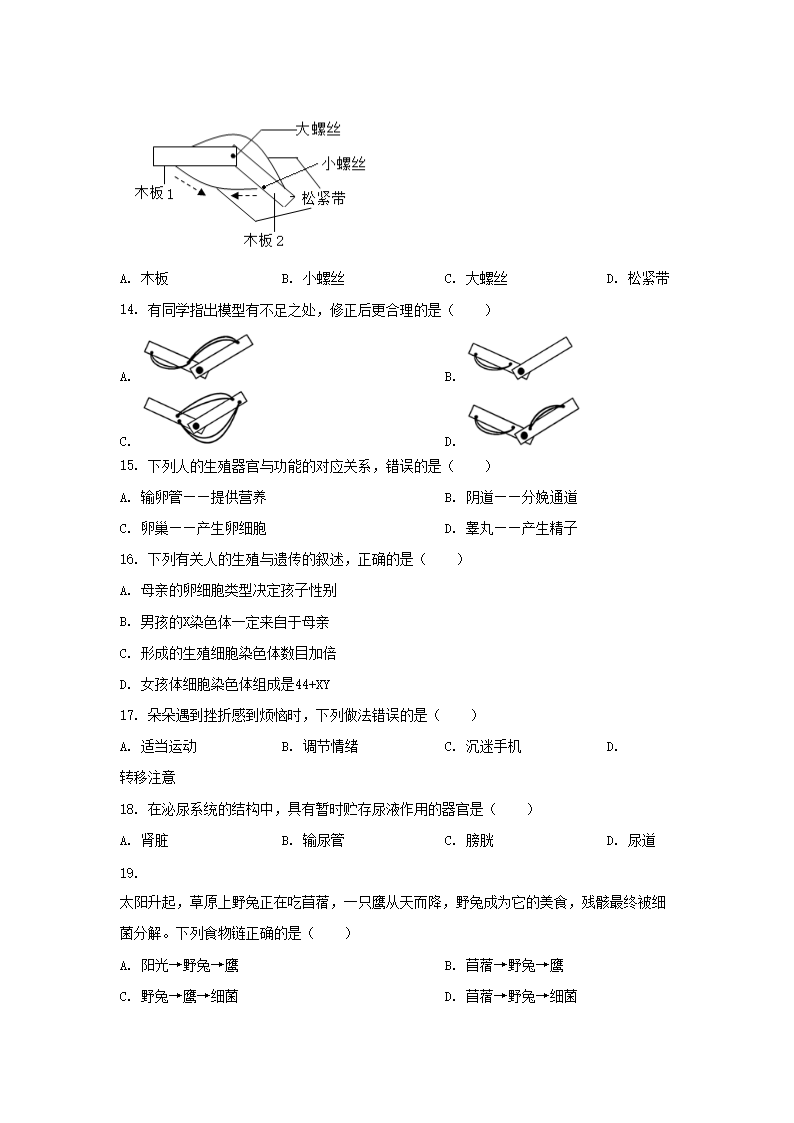 【文档名称】 2024年福建福州中考生物试题及答案(Word版).doc