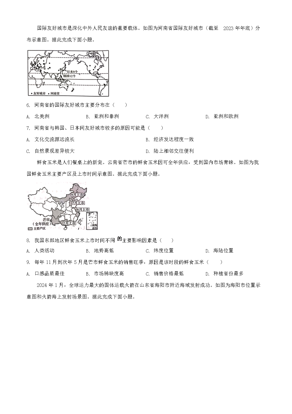 【文档名称】 2024年河南鹤壁中考地理试题及答案(Word版).doc