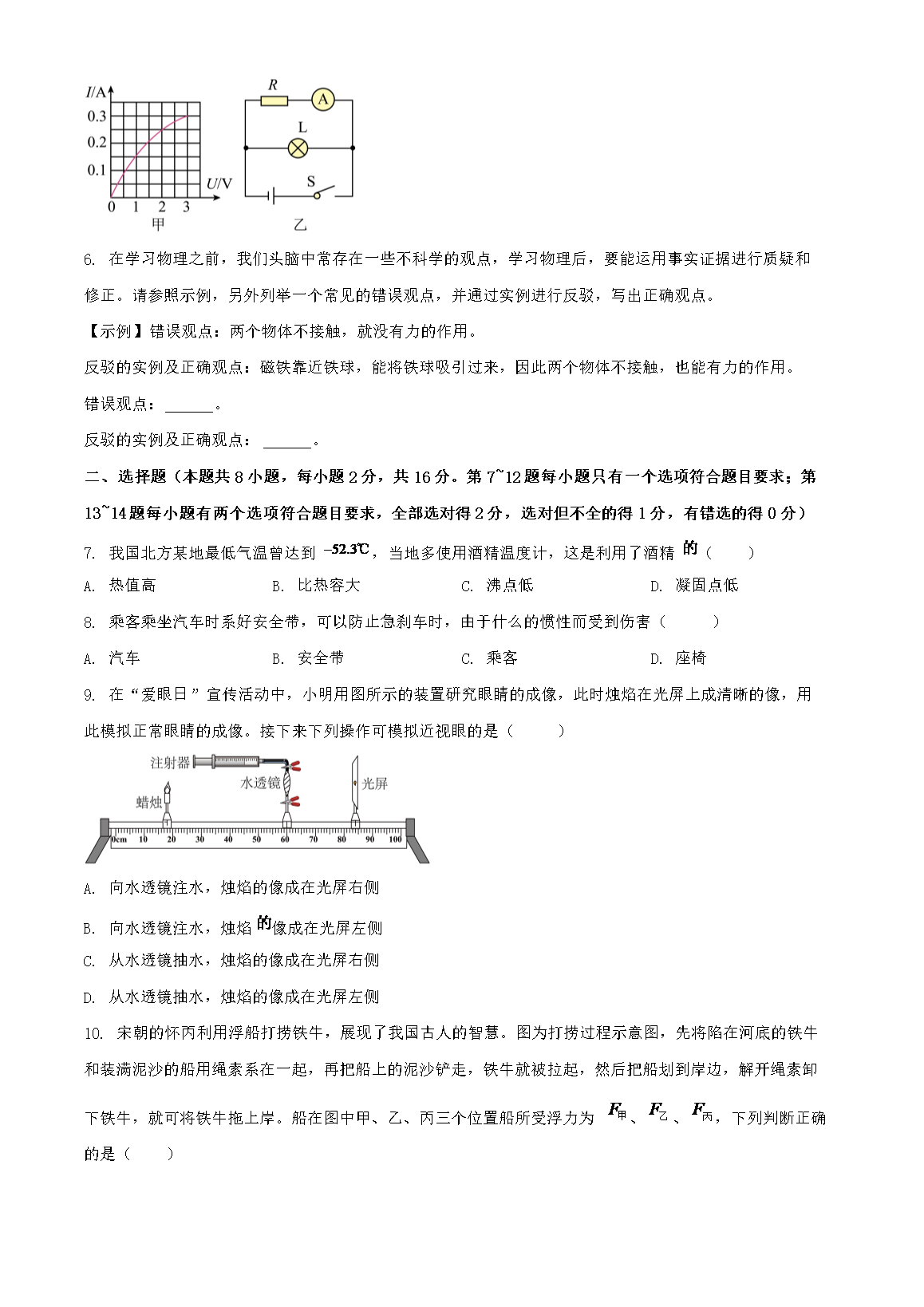 【文档名称】 2024年河南焦作中考物理试题及答案(Word版).doc