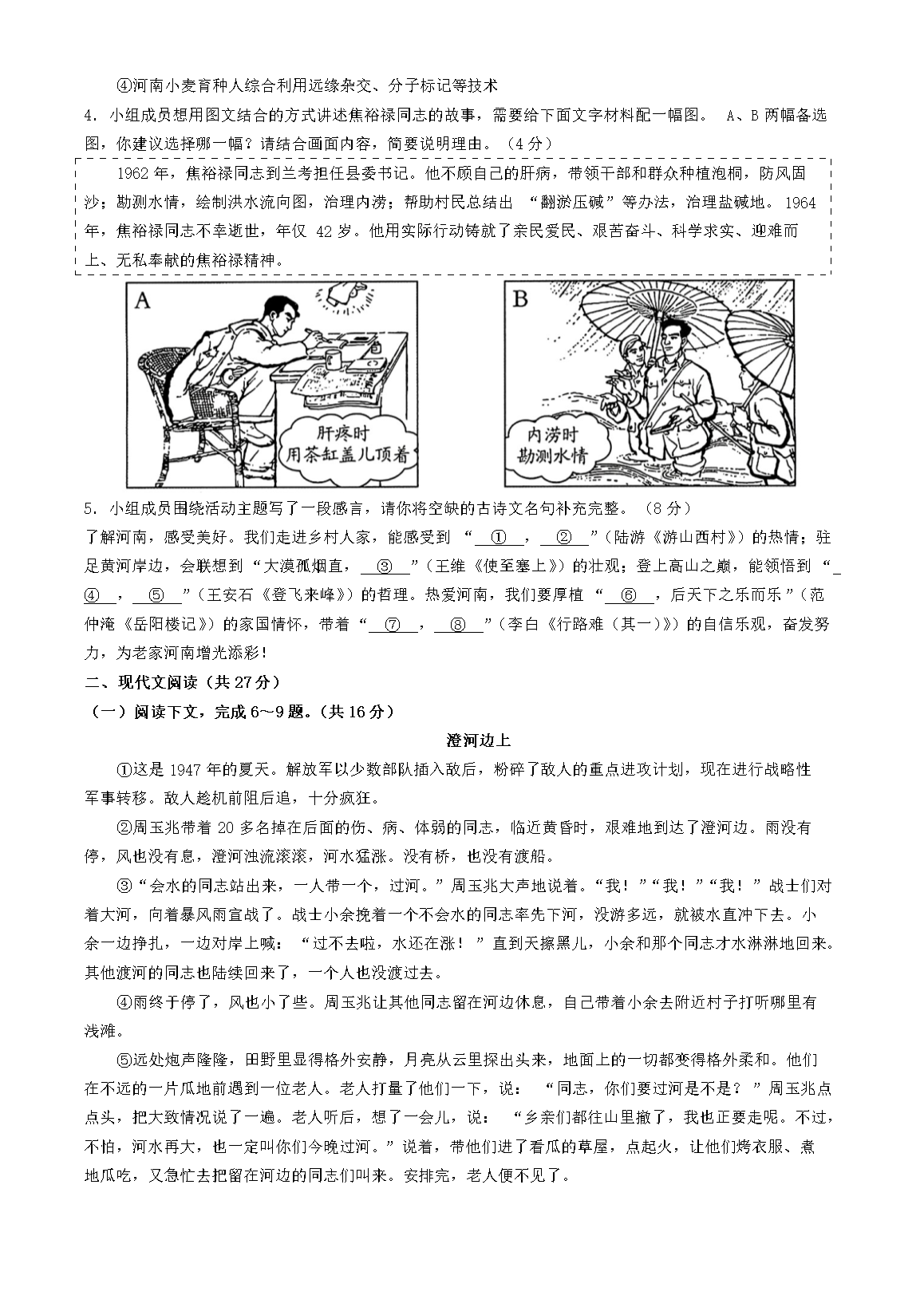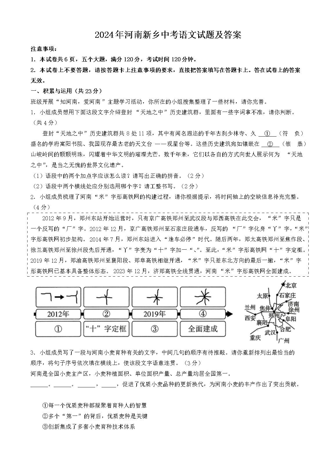 【文档名称】 2024年河南新乡中考语文试题及答案(Word版).doc