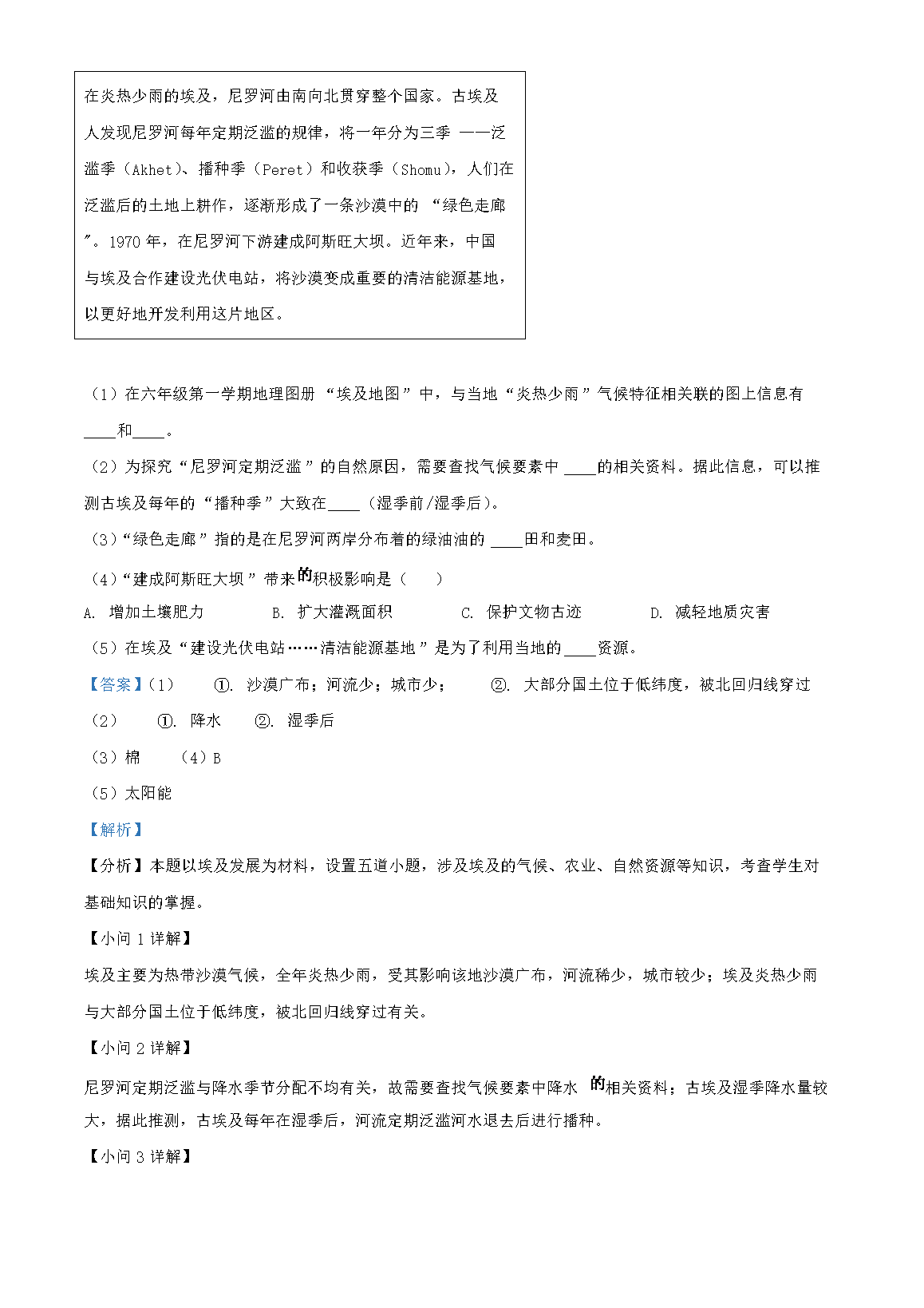 【文档名称】 2024年上海中考地理试题及答案(Word版).doc