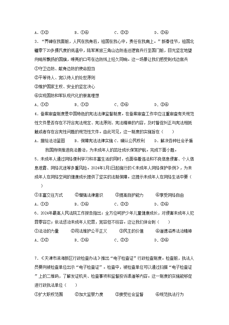 【文档名称】 2024年河北衡水中考道德与法治试题及答案(Word版).doc