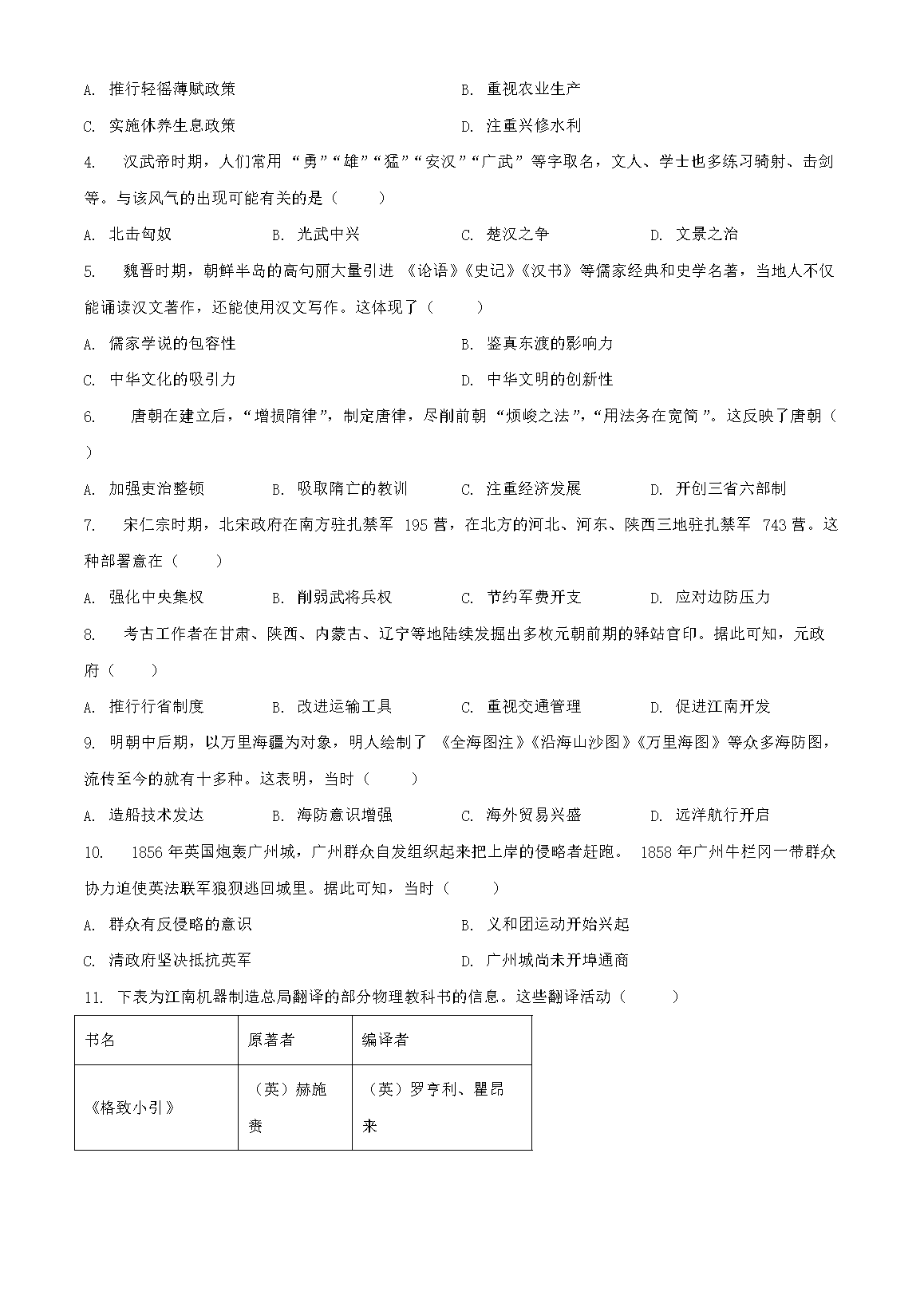 【文档名称】 2024年广东汕头中考历史试题及答案(Word版).doc