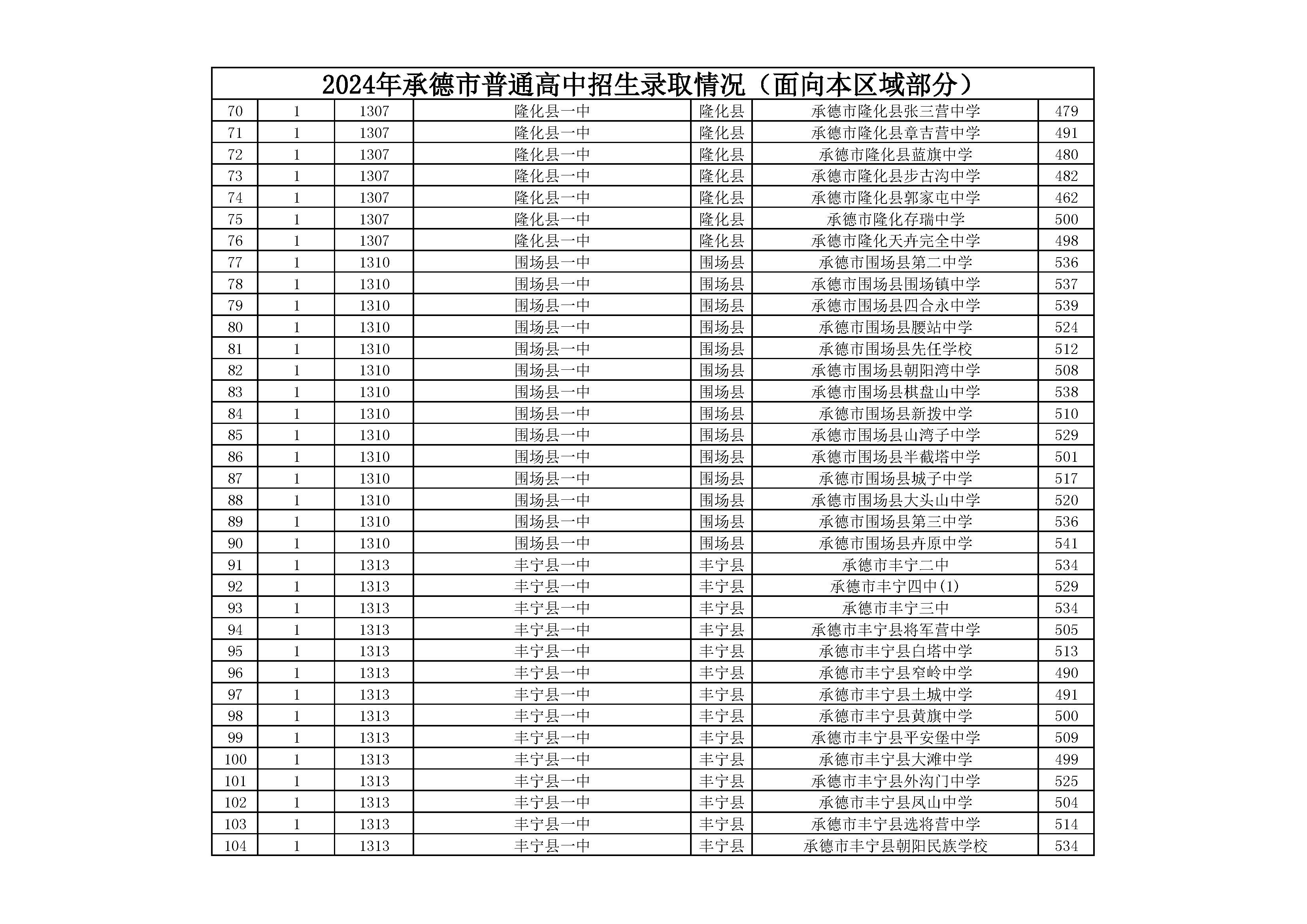 2024年河北承德市普通高中招生录取情况(本区域部分)