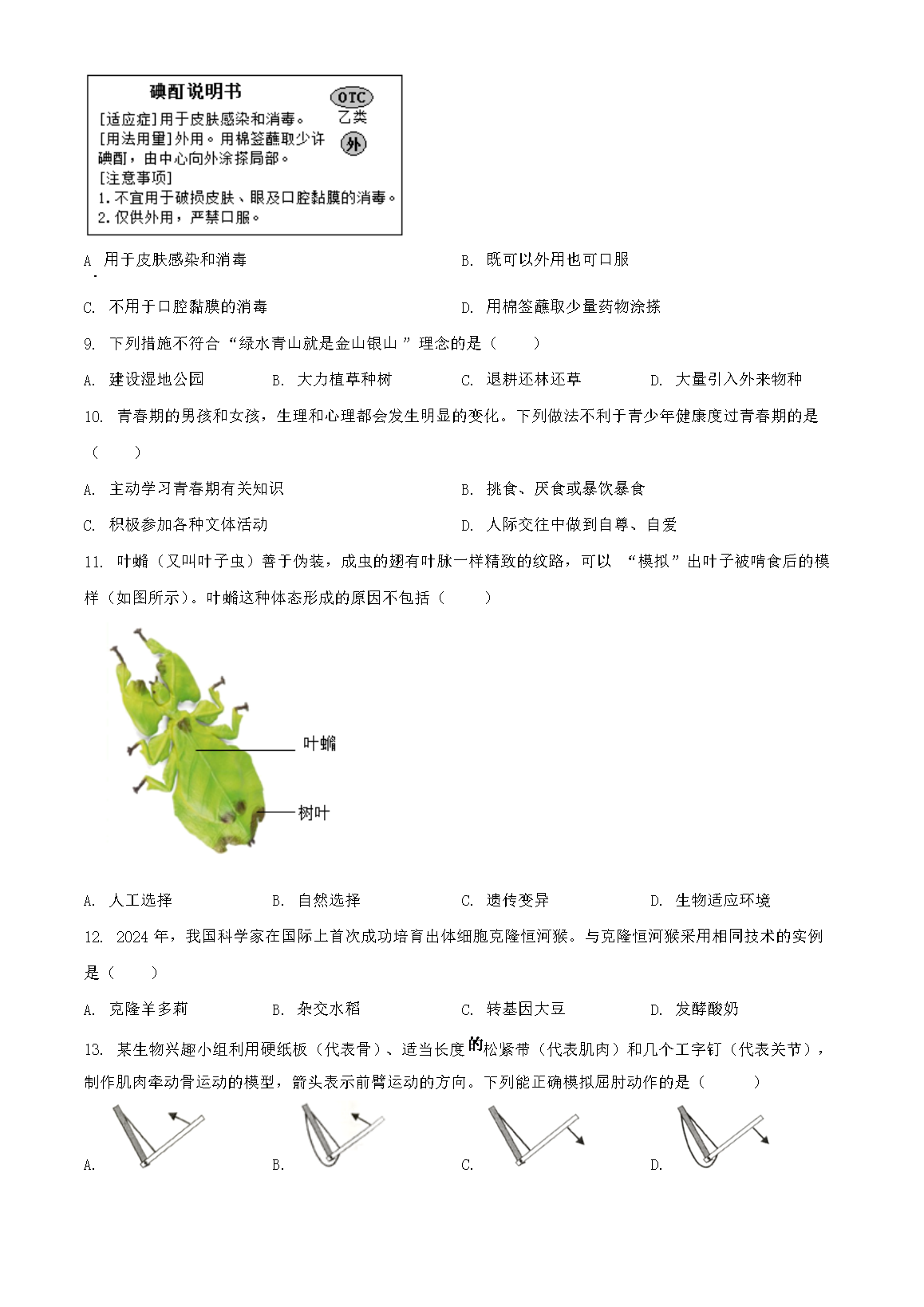 【文档名称】 2024年广西来宾中考生物试题及答案(Word版).doc