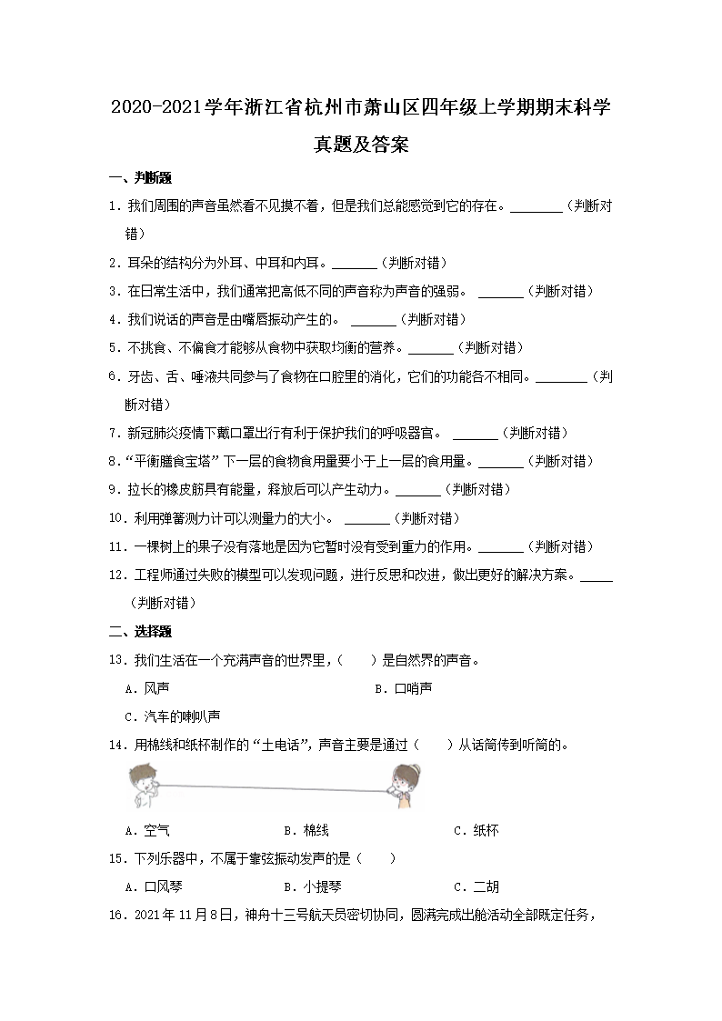 时间:2024-08-13 10:43:00 来源:开云网页版 [字体:小 中 大]【文档名称】 2020-2021开云kaiyun(中国)年浙江省杭州市萧山区四年级上开云kaiyun(中国)期期末科开云kaiyun(中国)真题及答案(Word版).doc