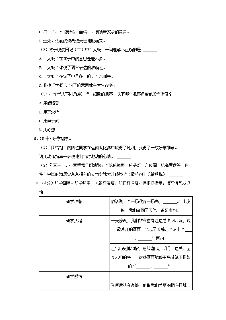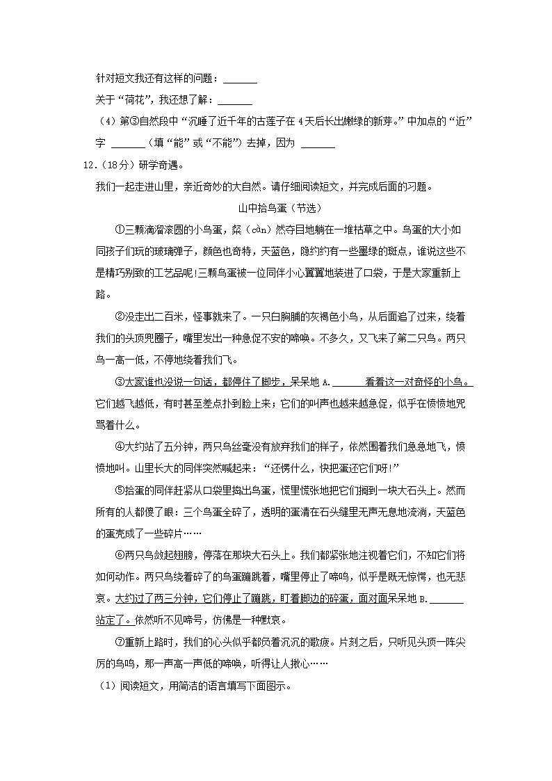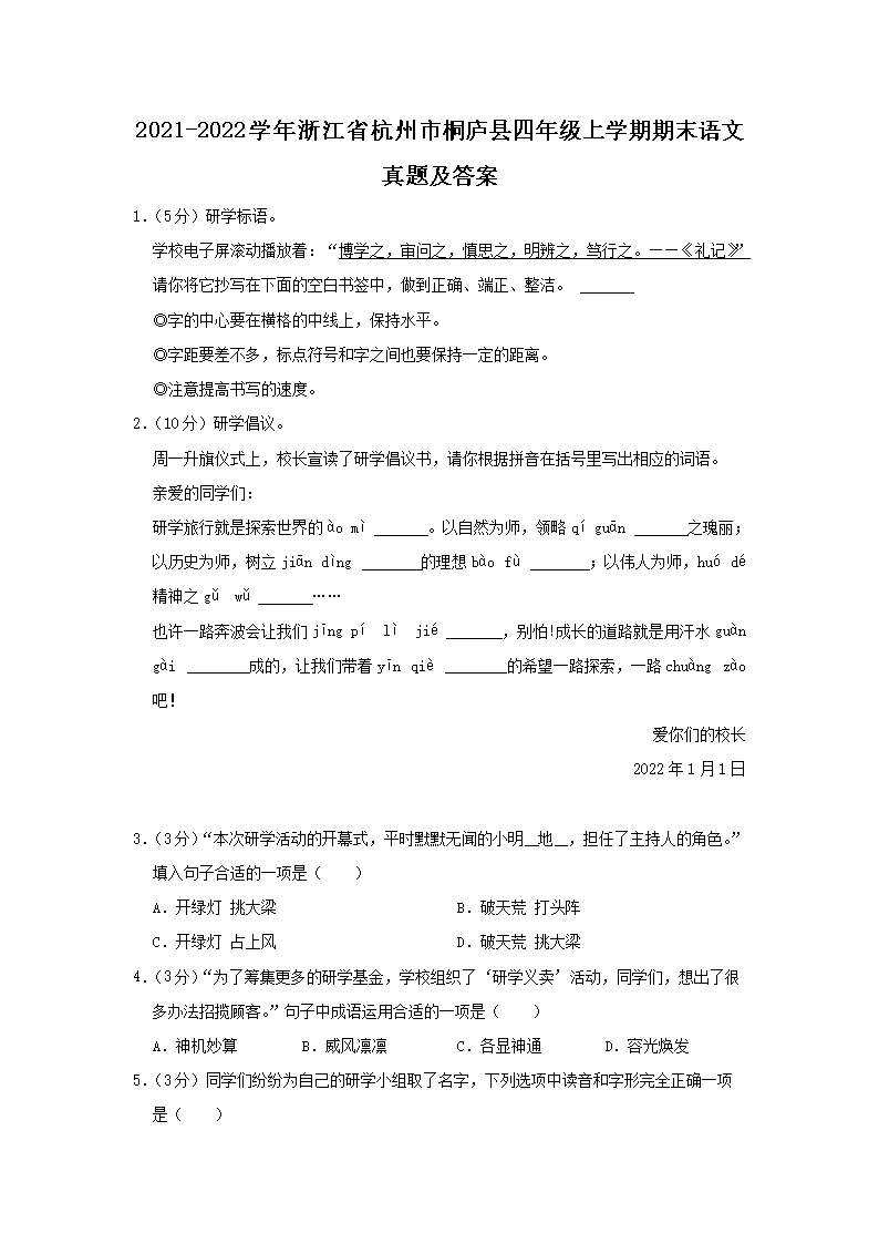 2021-2022开云kaiyun(中国)年浙江省杭州市桐庐县四年级上开云kaiyun(中国)期期末语文真题及答案(Word版)