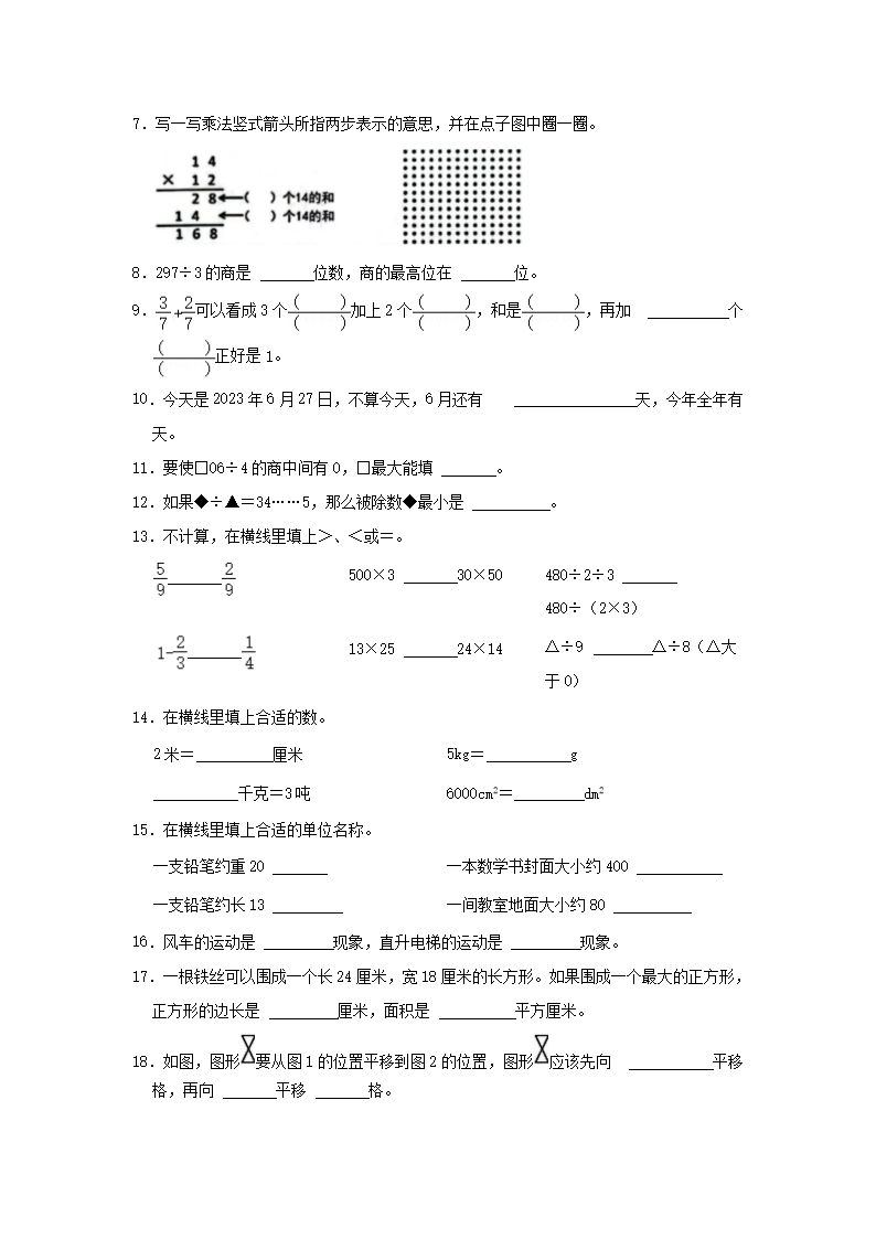 2022-2023开云kaiyun(中国)年四川省成都市武侯区小开云kaiyun(中国)三年级下册数开云kaiyun(中国)期末试题及答案(Word版)