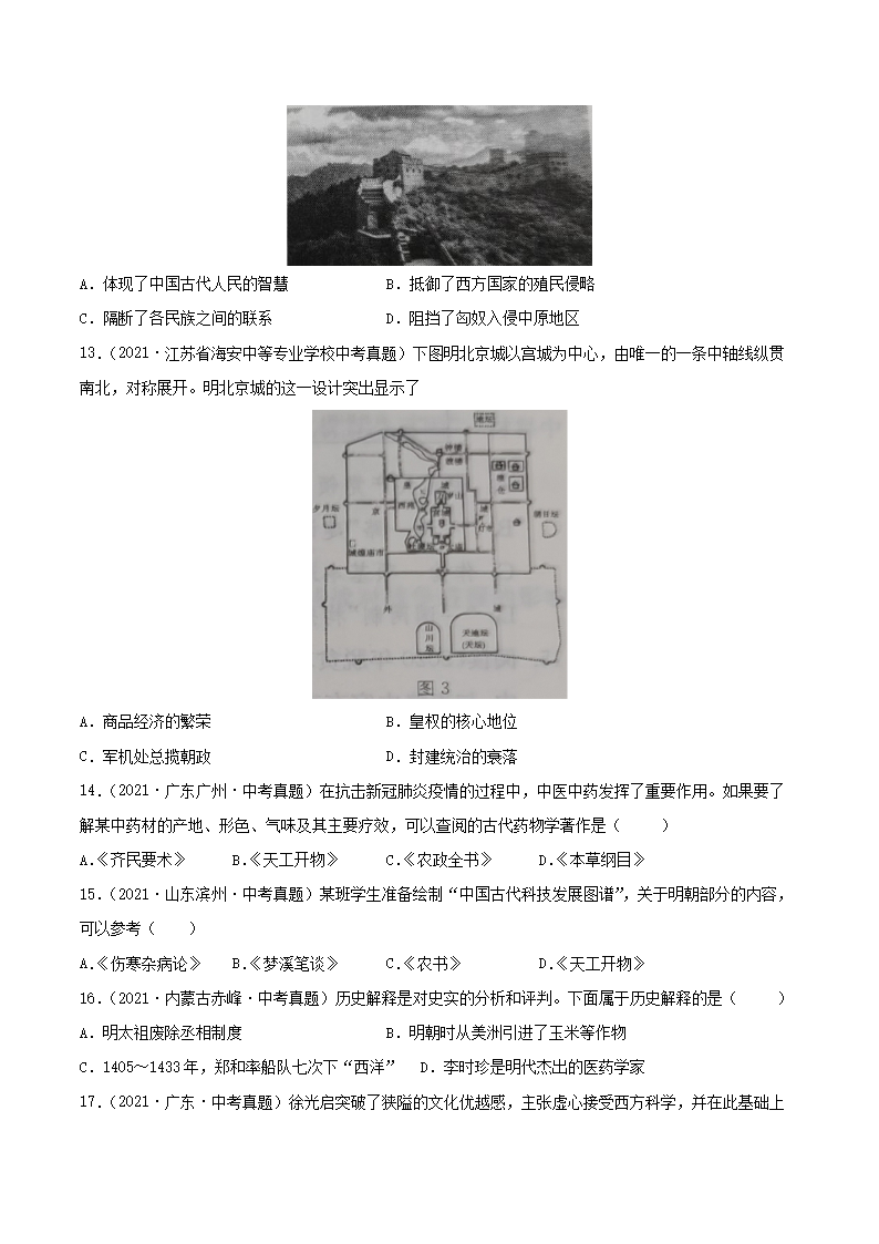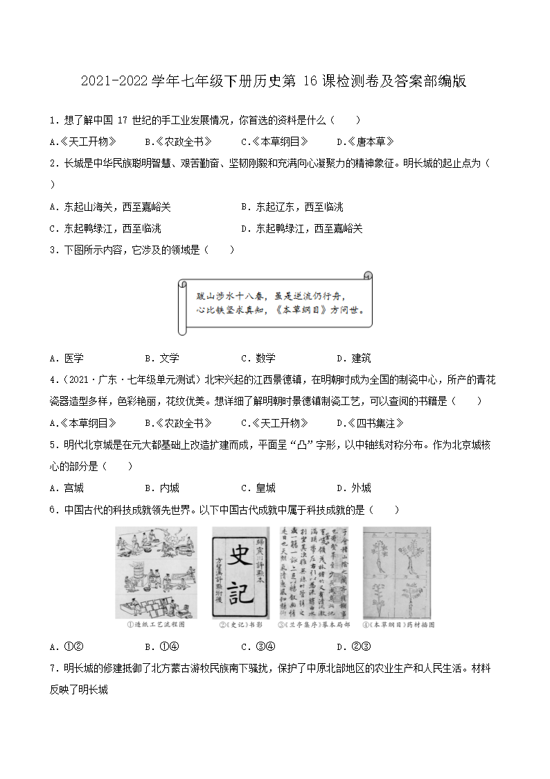 【文档名称】 2021-2022开云kaiyun(中国)年七年级下册历史第16课检测卷及答案部编版(Word版).doc