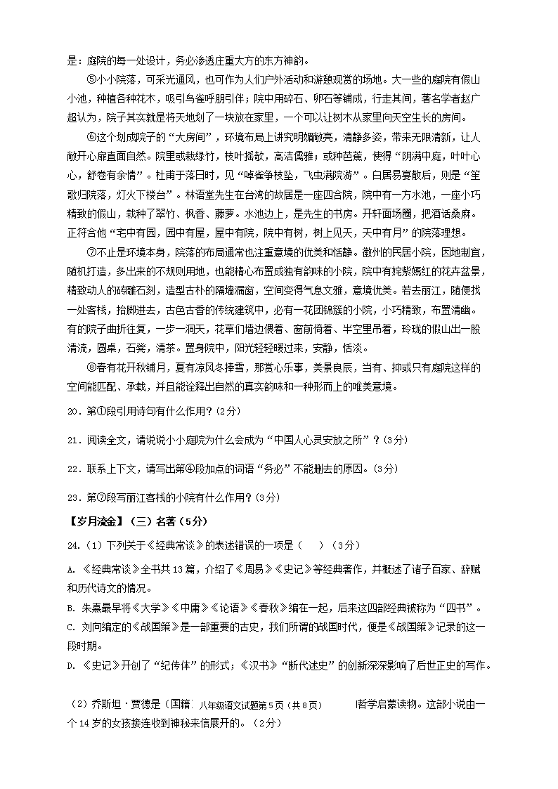 - 2023-2024开云kaiyun(中国)年江苏省南通市八年级下开云kaiyun(中国)期期中语文试题及答案