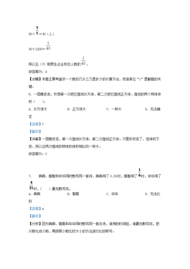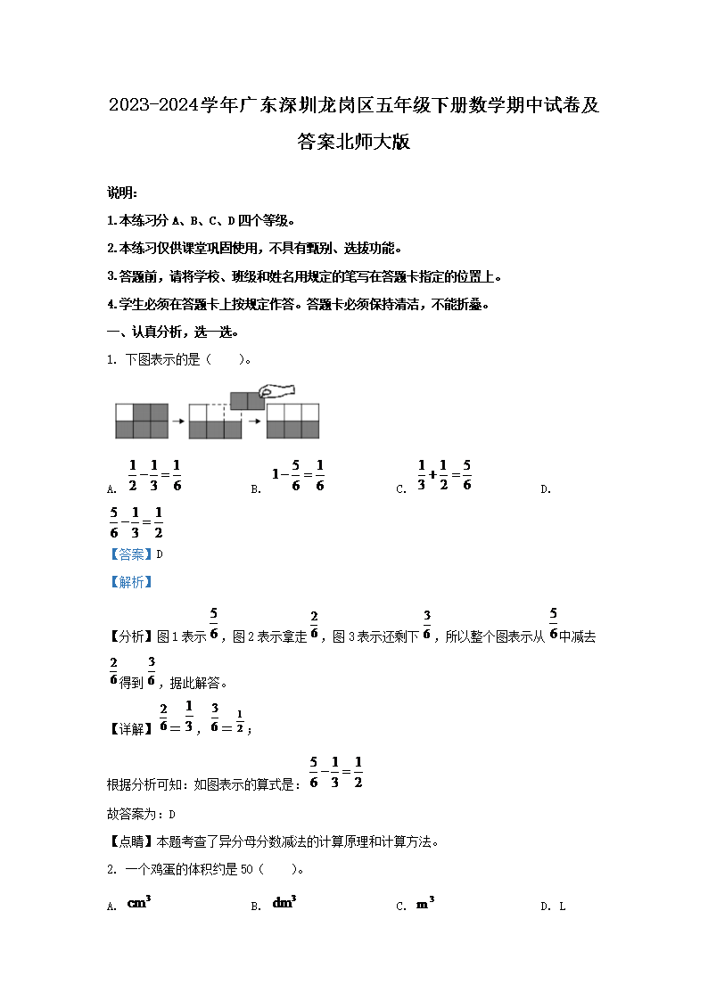 - 2023-2024开云kaiyun(中国)年广东深圳五年级下册数开云kaiyun(中国)期末试卷及答案北师大版