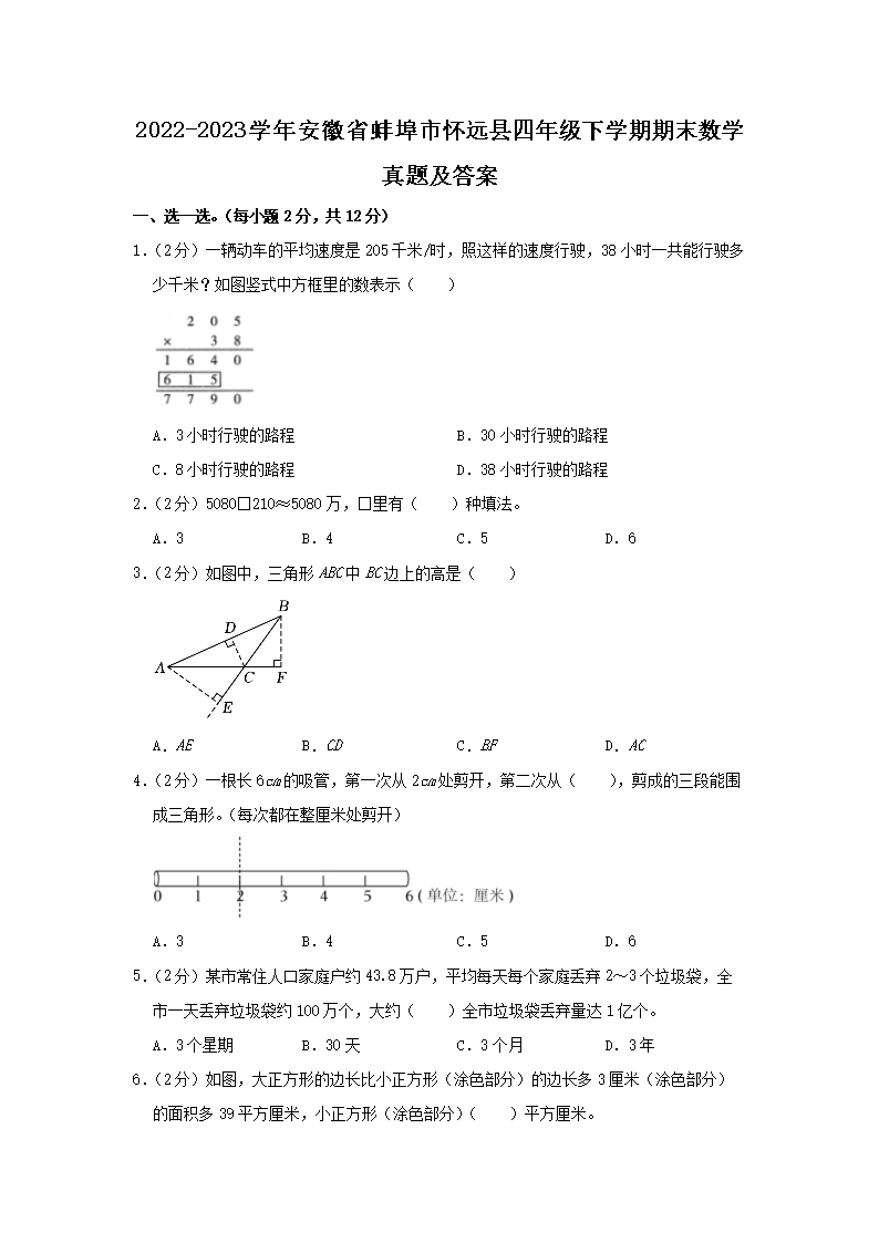 2022-2023开云kaiyun(中国)年安徽省蚌埠市怀远县四年级下开云kaiyun(中国)期期末数开云kaiyun(中国)真题及答案(Word版)