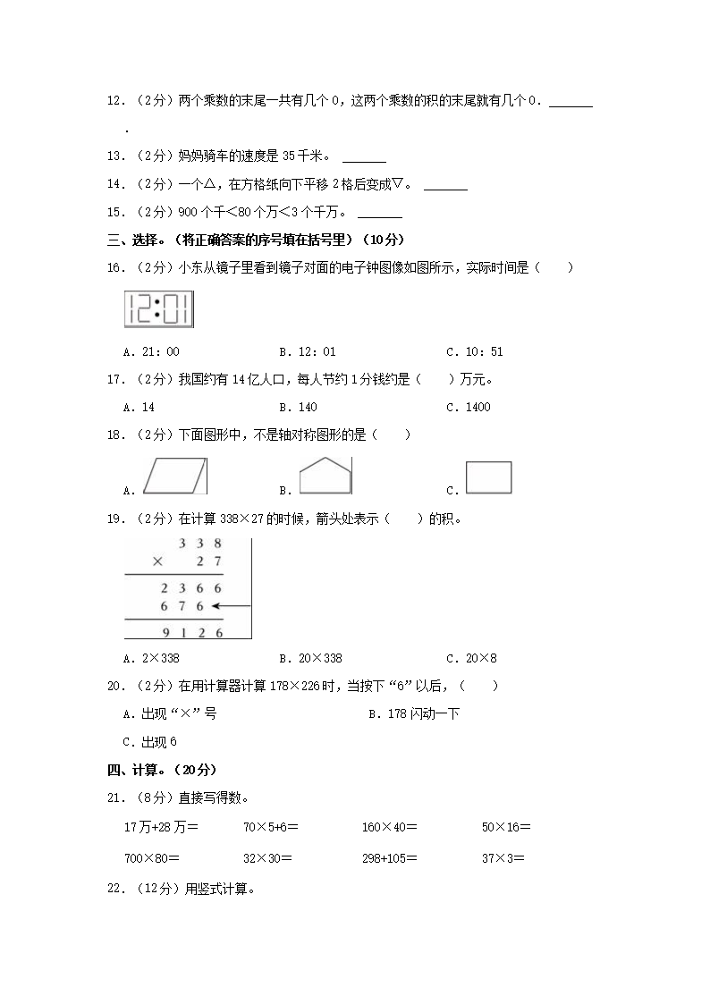 - 查看小开云kaiyun(中国)四年级全部真题>>