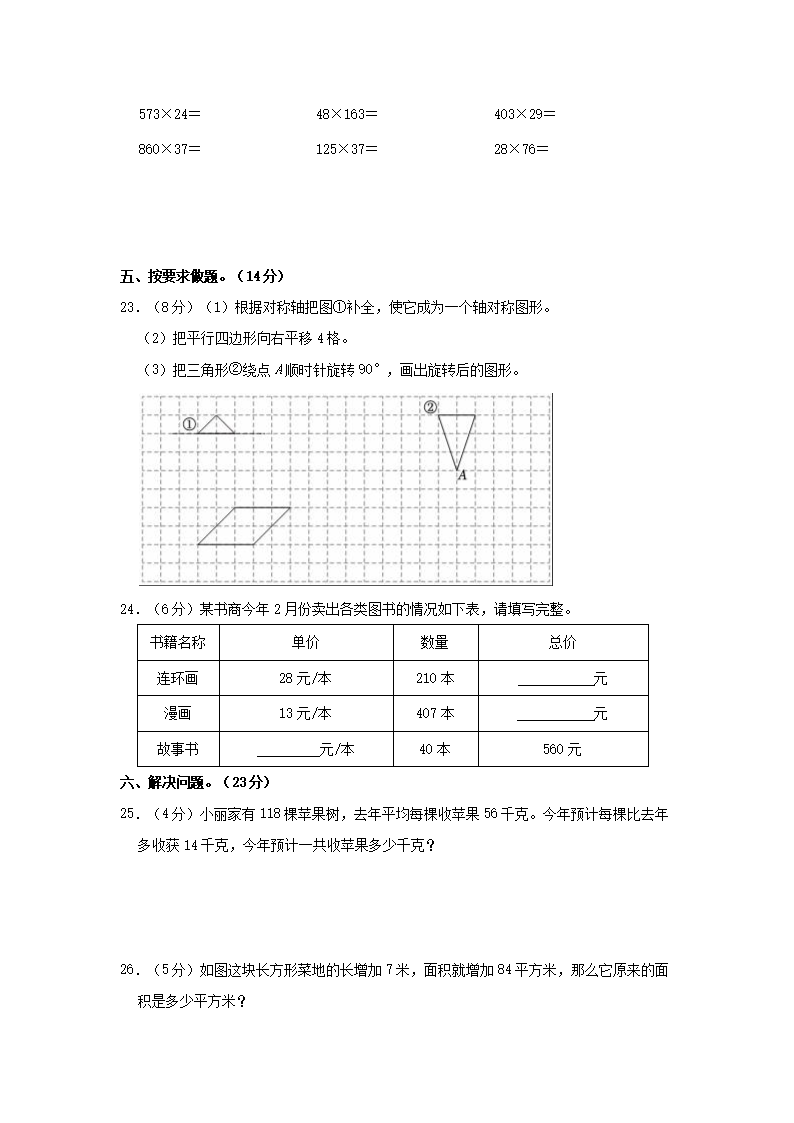 - 2021-2022开云kaiyun(中国)年江西省南昌市红谷滩区四年级下开云kaiyun(中国)期期末数开云kaiyun(中国)真题及答案