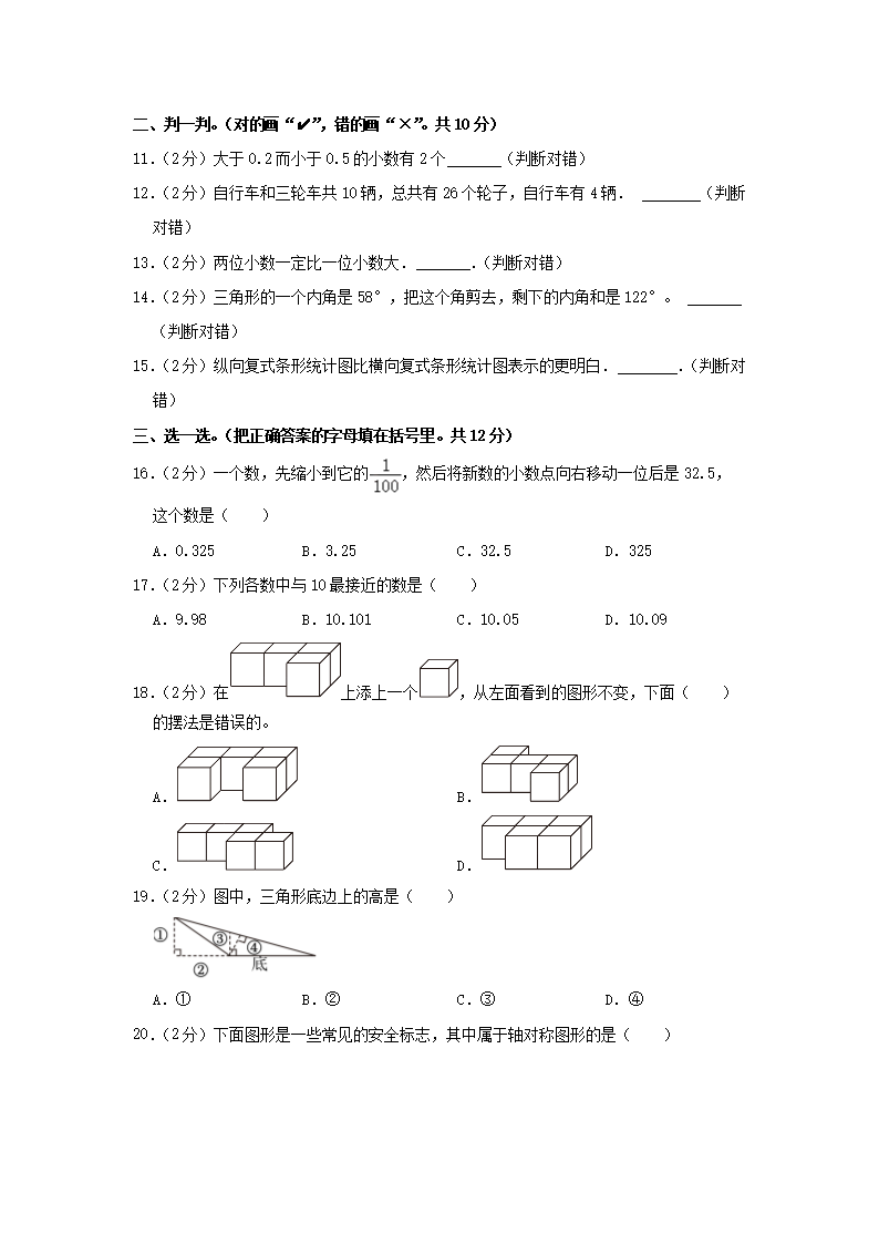 - 查看小开云kaiyun(中国)四年级全部真题>>