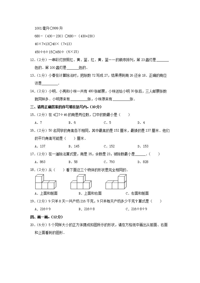 - 查看小开云kaiyun(中国)四年级全部真题>>