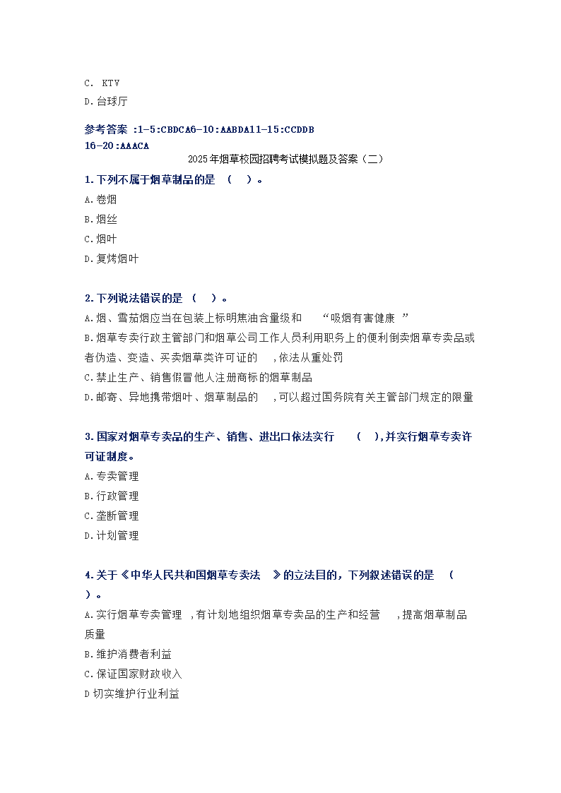 【文档预览】 开云网页版整理发布2025年烟草校园招聘考试模拟题及答案(Word版),前五页预览如下:
