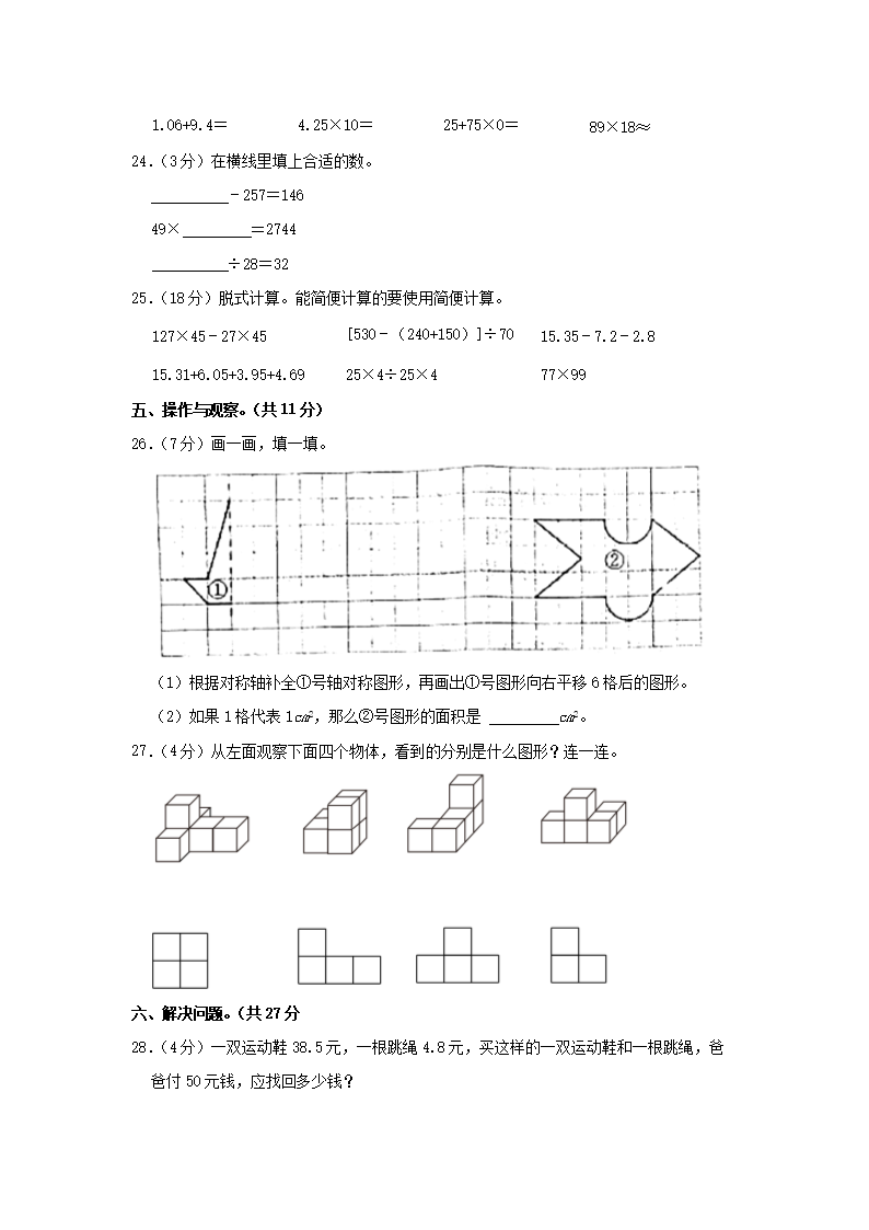 - 查看小开云kaiyun(中国)四年级全部真题>>