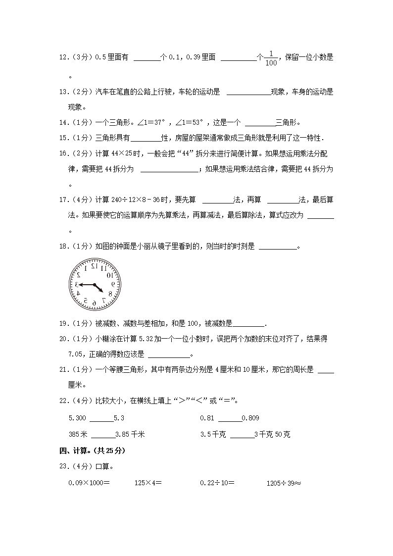 - 2021-2022开云kaiyun(中国)年上海市浦东新区四年级上开云kaiyun(中国)期期末数开云kaiyun(中国)真题及答案