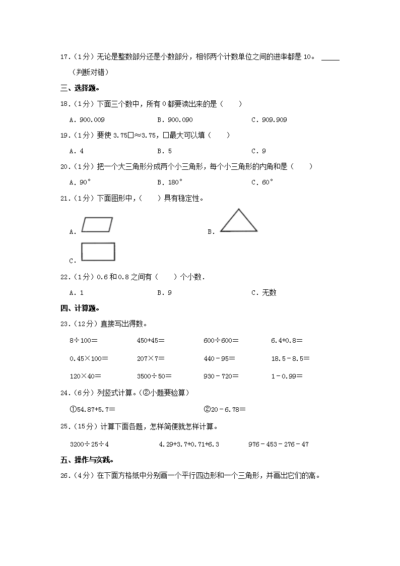 - 查看小开云kaiyun(中国)四年级全部真题>>