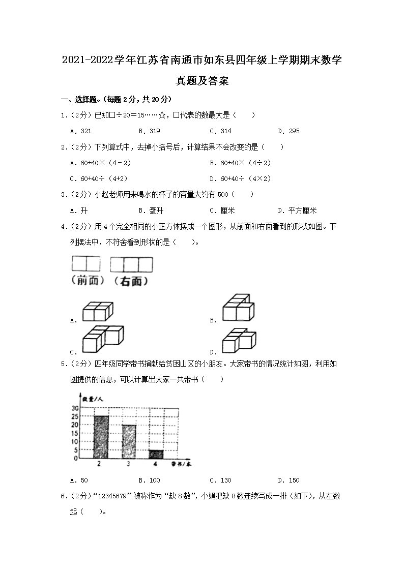 2021-2022开云kaiyun(中国)年江苏省南通市如东县四年级上开云kaiyun(中国)期期末数开云kaiyun(中国)真题及答案(Word版)