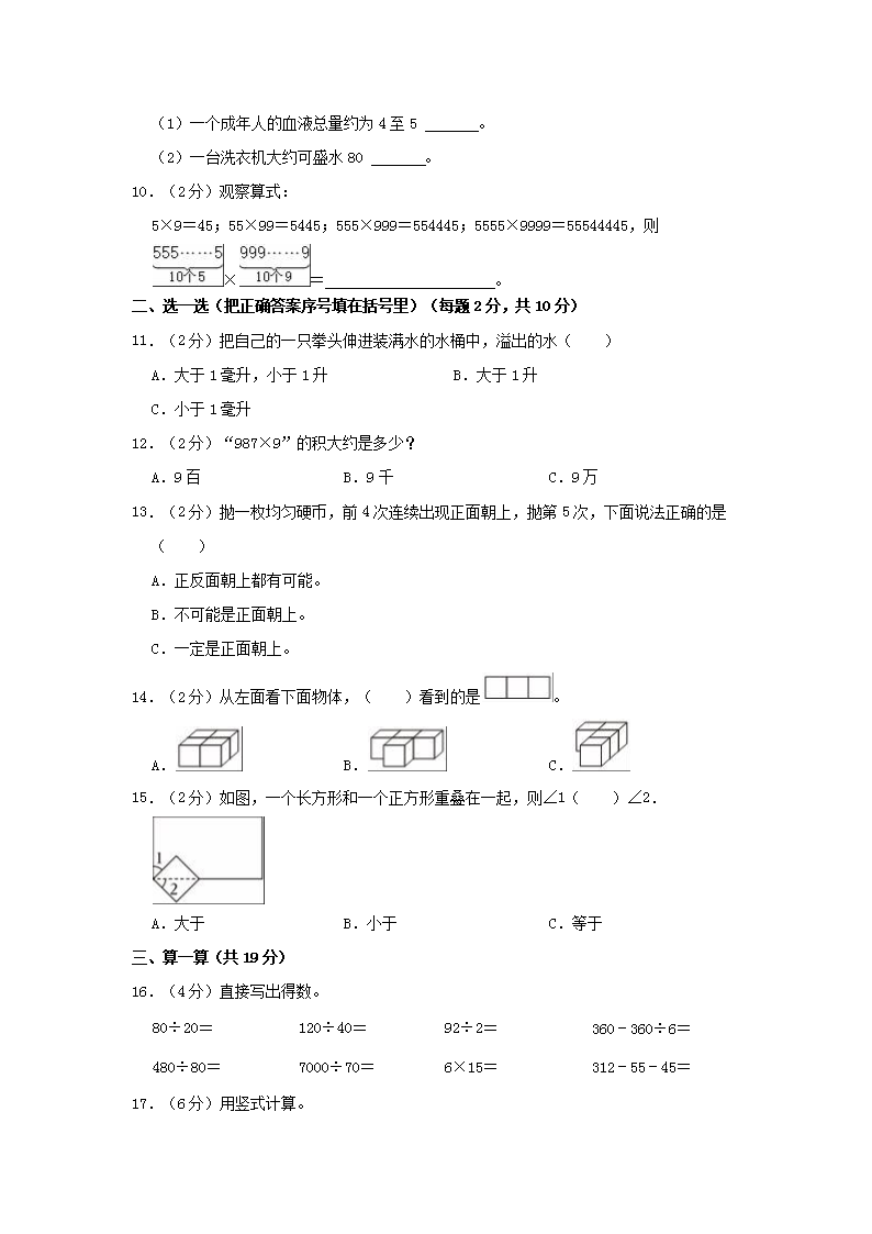 - 2023-2024开云kaiyun(中国)年四川省内江市威远县四年级上开云kaiyun(中国)期期末数开云kaiyun(中国)真题及答案