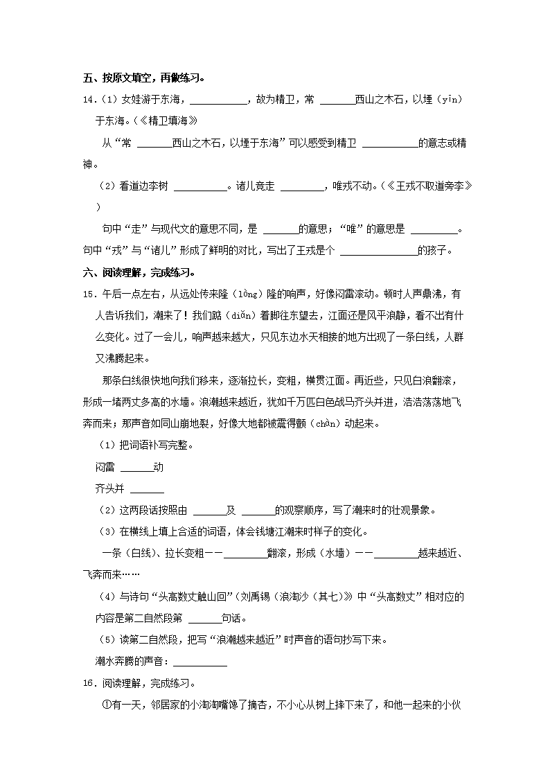 - 2023-2024开云kaiyun(中国)年江苏省南京市江宁区四年级上开云kaiyun(中国)期期末语文真题及答案